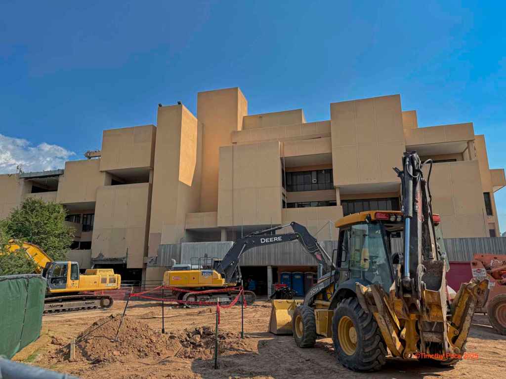• A man with binoculars is valid. The old Humanities Building is semi-historical in that it’s a Cubist-style building. However, UNM can’t keep it because the Department of Higher Education has a net-zero square feet policy. In order for any state-funded university or college to build new buildings, they have to demolish the same amount of square footage as the new buildings. Thanks, Dale.