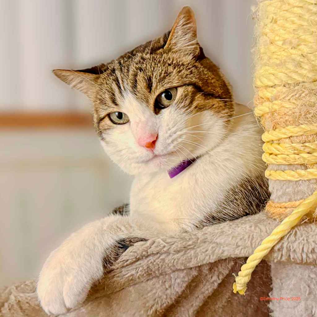 He’s cute and a psycho kitty. Thanks, Cindy.