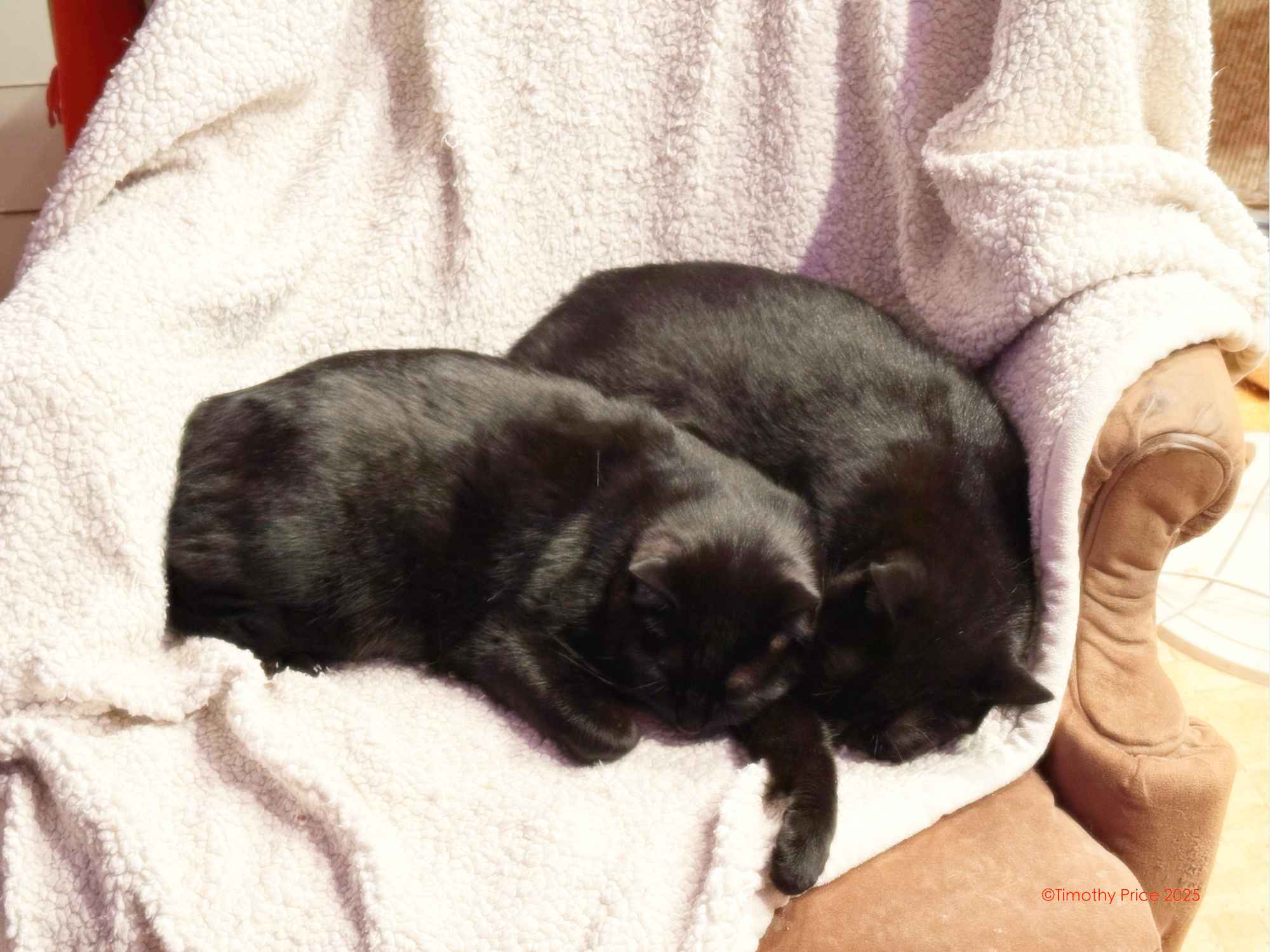 Birds / black cats / Cats By The Light Of Day December 28, 2025December 28, 2025 Timothy PriceLeave a comment Gwendolyn and Loki Except for night Share this: Click to share on X (Opens in new window) X Click to share on Facebook (Opens in new window) Facebook Like Loading...