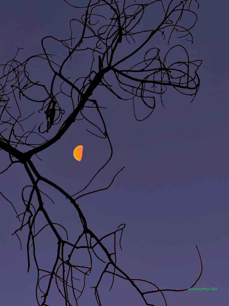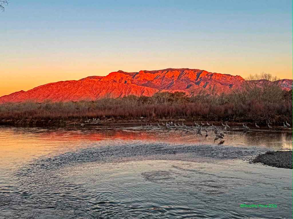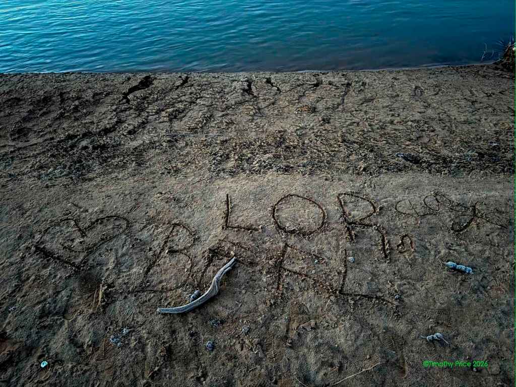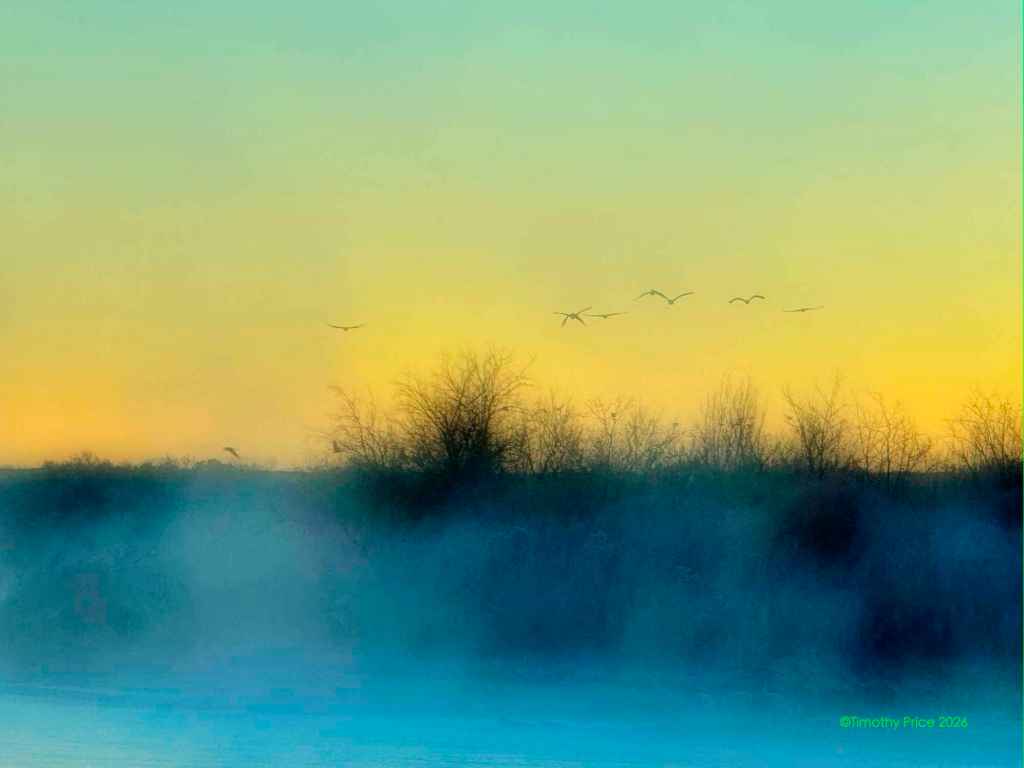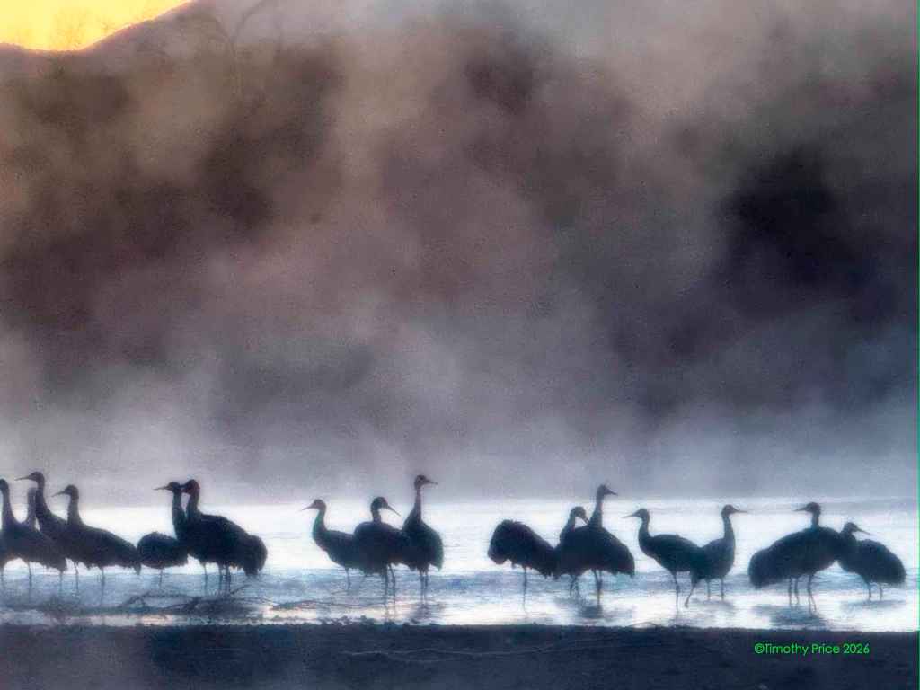The Writing’s On The Beach February 8, 2026February 8, 2026 Timothy Price2 Comments Twilight Discovered at dawnAcronymphomaniaScratched in the beach sand It’s like the cranes are in a sauna when it’s a devilishly cold -6.66º C (20º F) outside. Glenda, Silver and Sasha by Laurie.