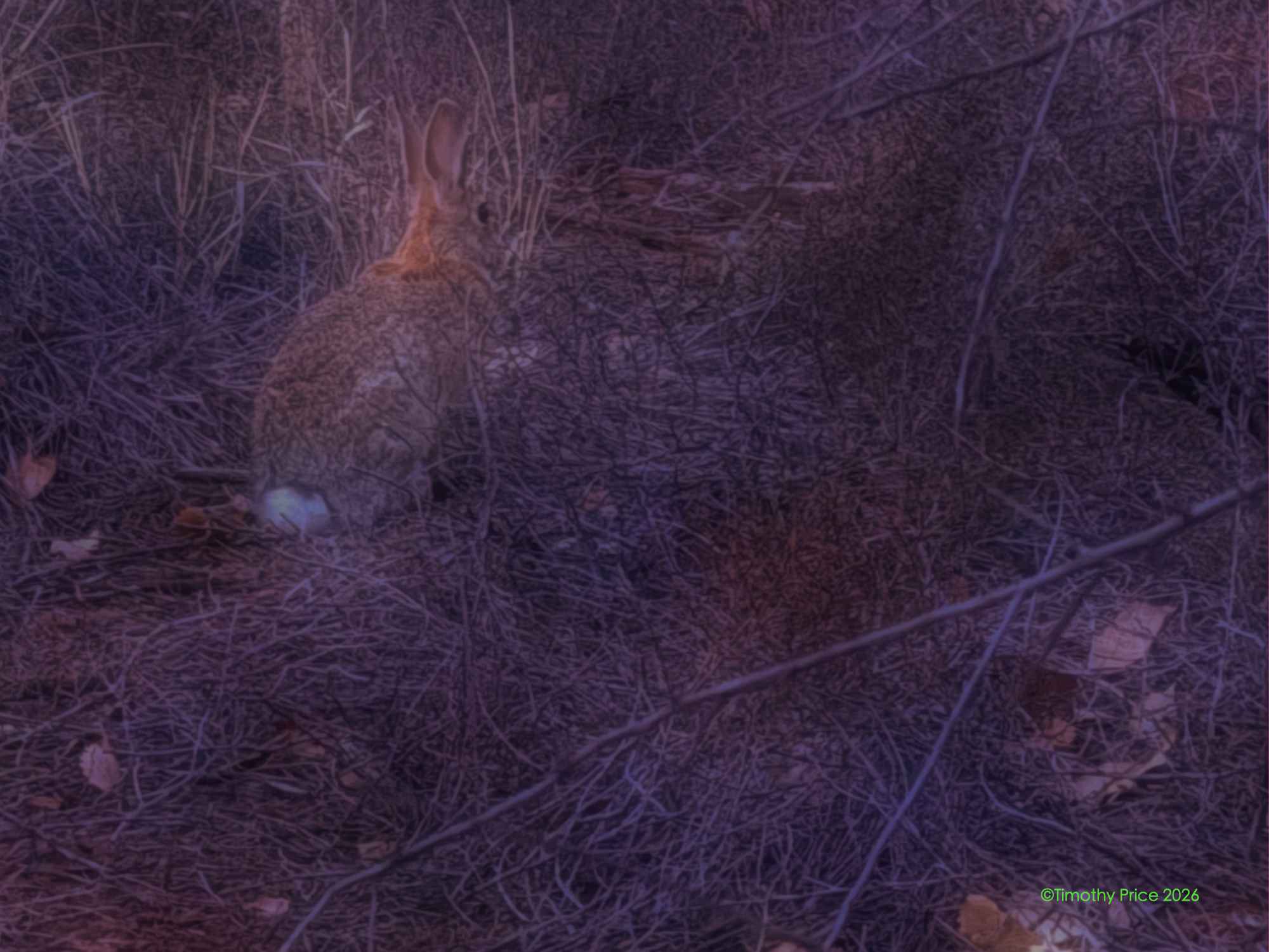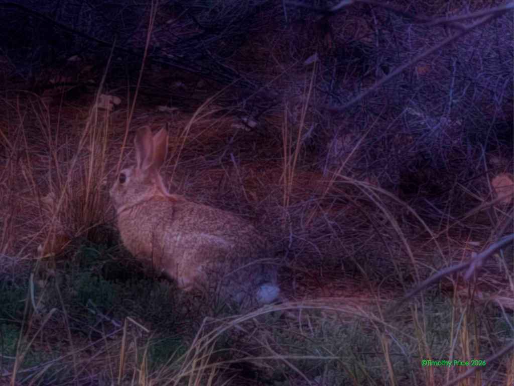 Bosque Bunny In Dim Light February 25, 2026 Timothy Price2 Comments Twilight Dawn Bosque Bunny in the dim light of almost dawn Determined cranes at dusk