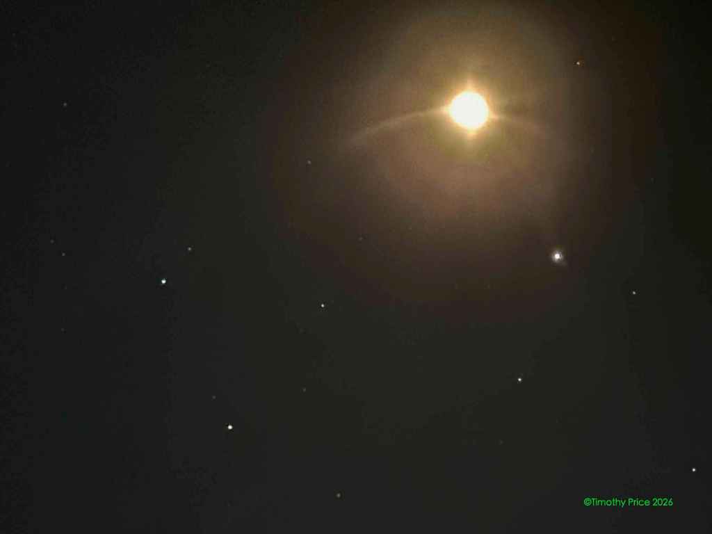 The moon and Jupiter partnered up to square dance with Castor and Pollux last night.