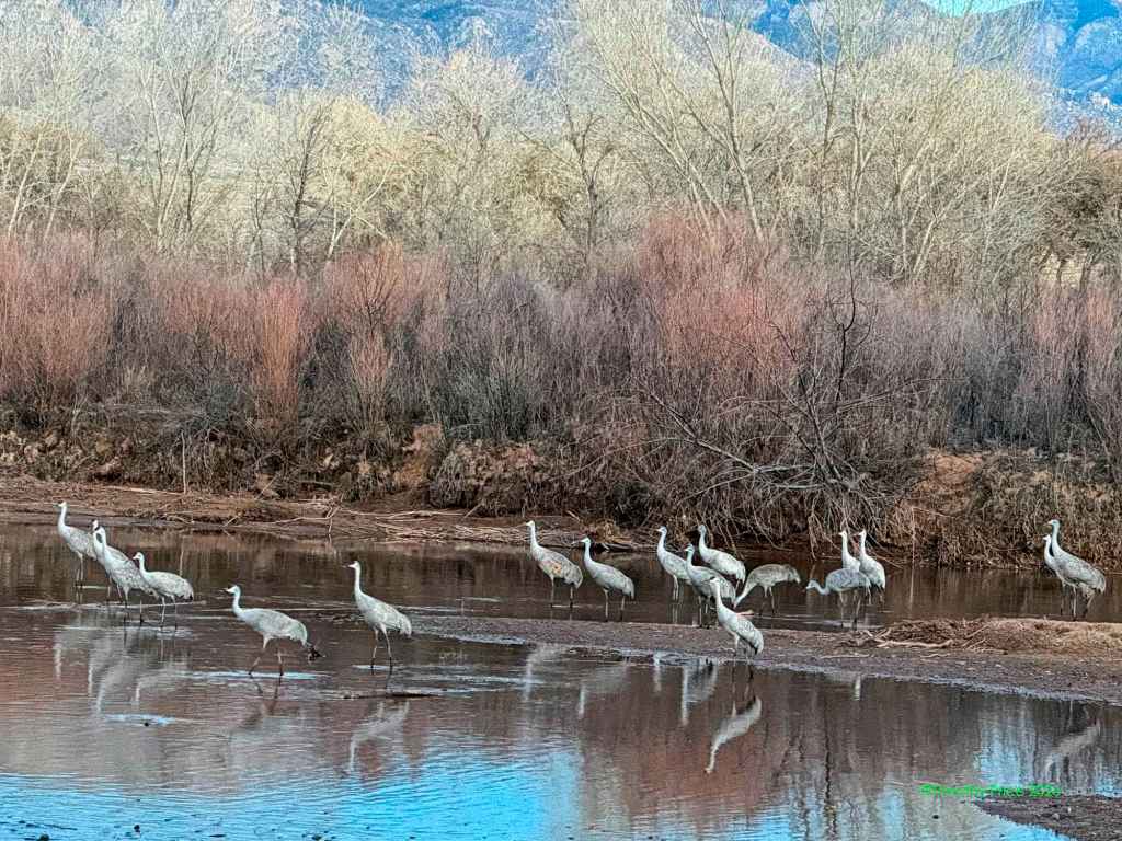 Cranes reflecting before they fly north
