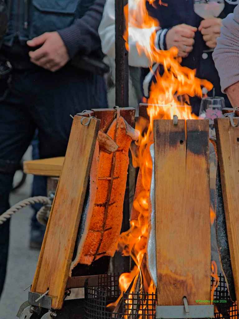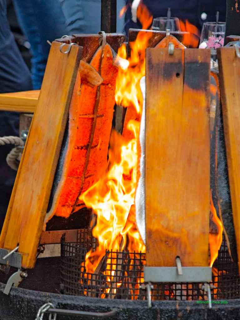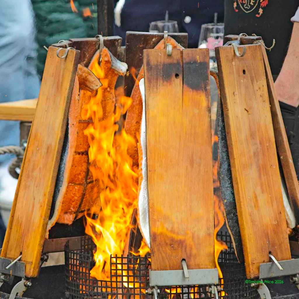 Roasting salmon on planks