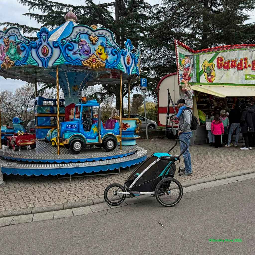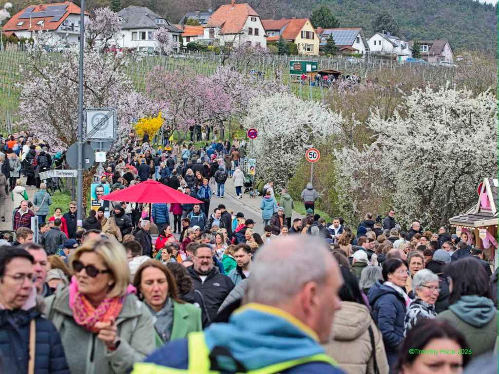 Despite Freyja blocking the way, we rode the train to the Gimmeldingen Mandelblütenfest (Almond Blossom Festival).