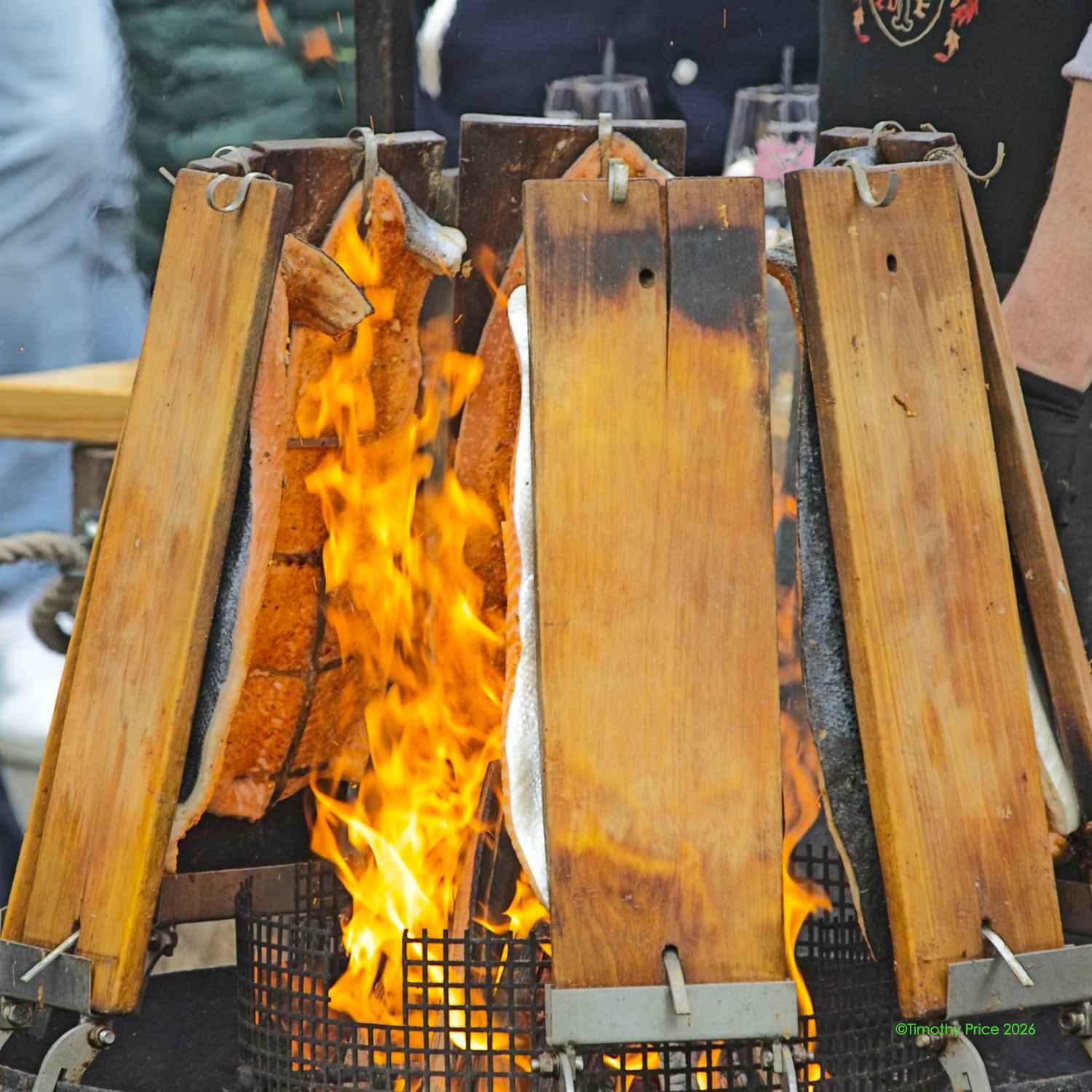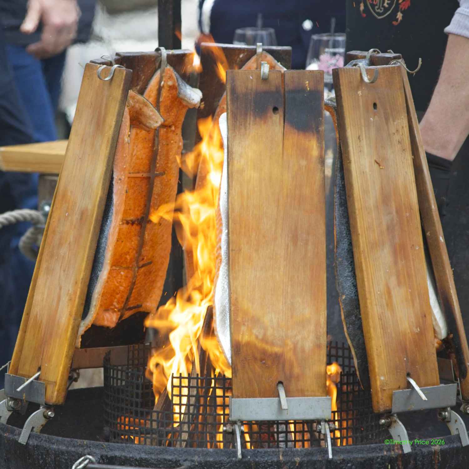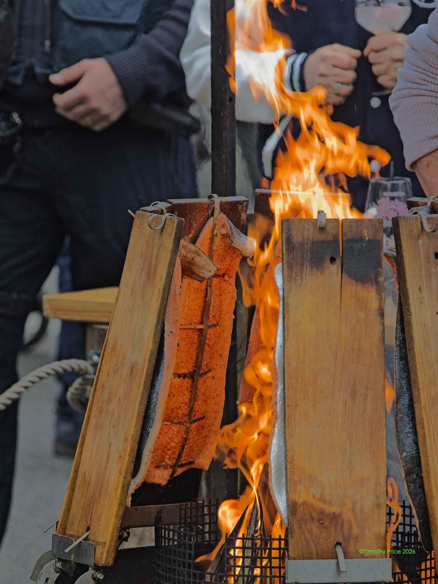 Roasting salmon on planks
