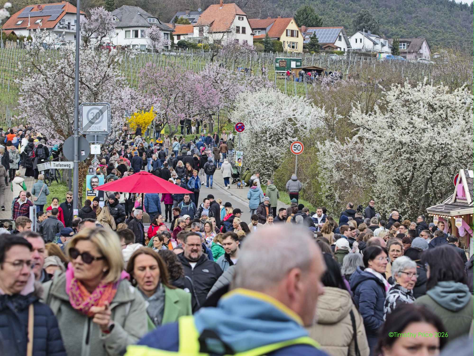 Despite Freyja blocking the way, we rode the train to the Gimmeldingen Mandelblütenfest (Almond Blossom Festival).
