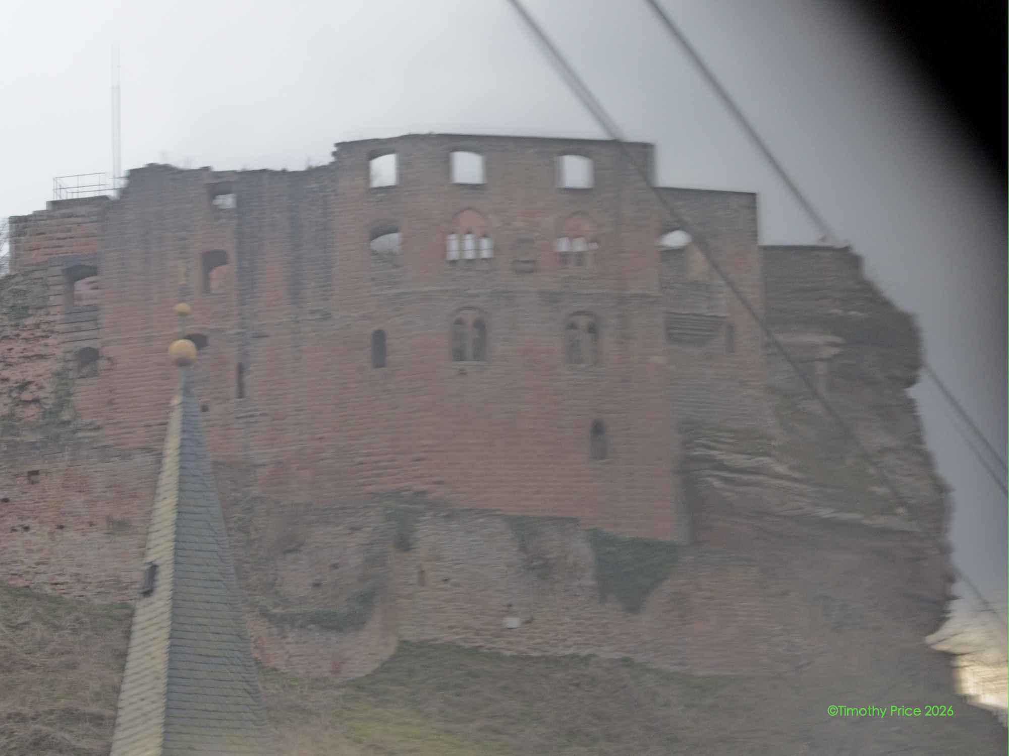Castle at Frankenstein through the train car window.