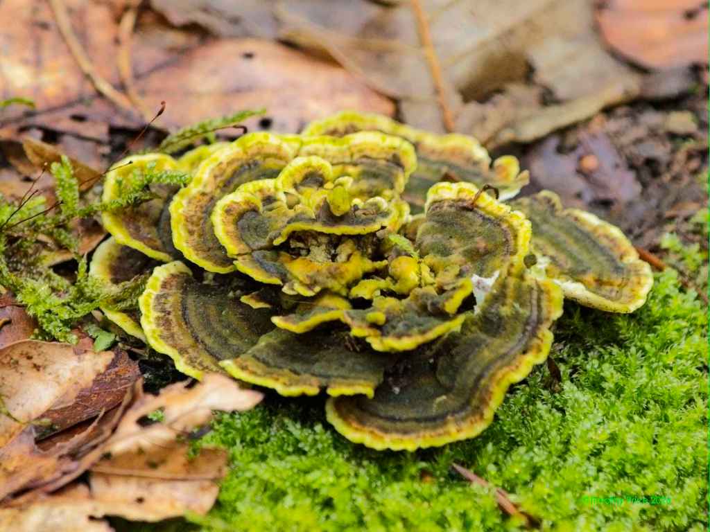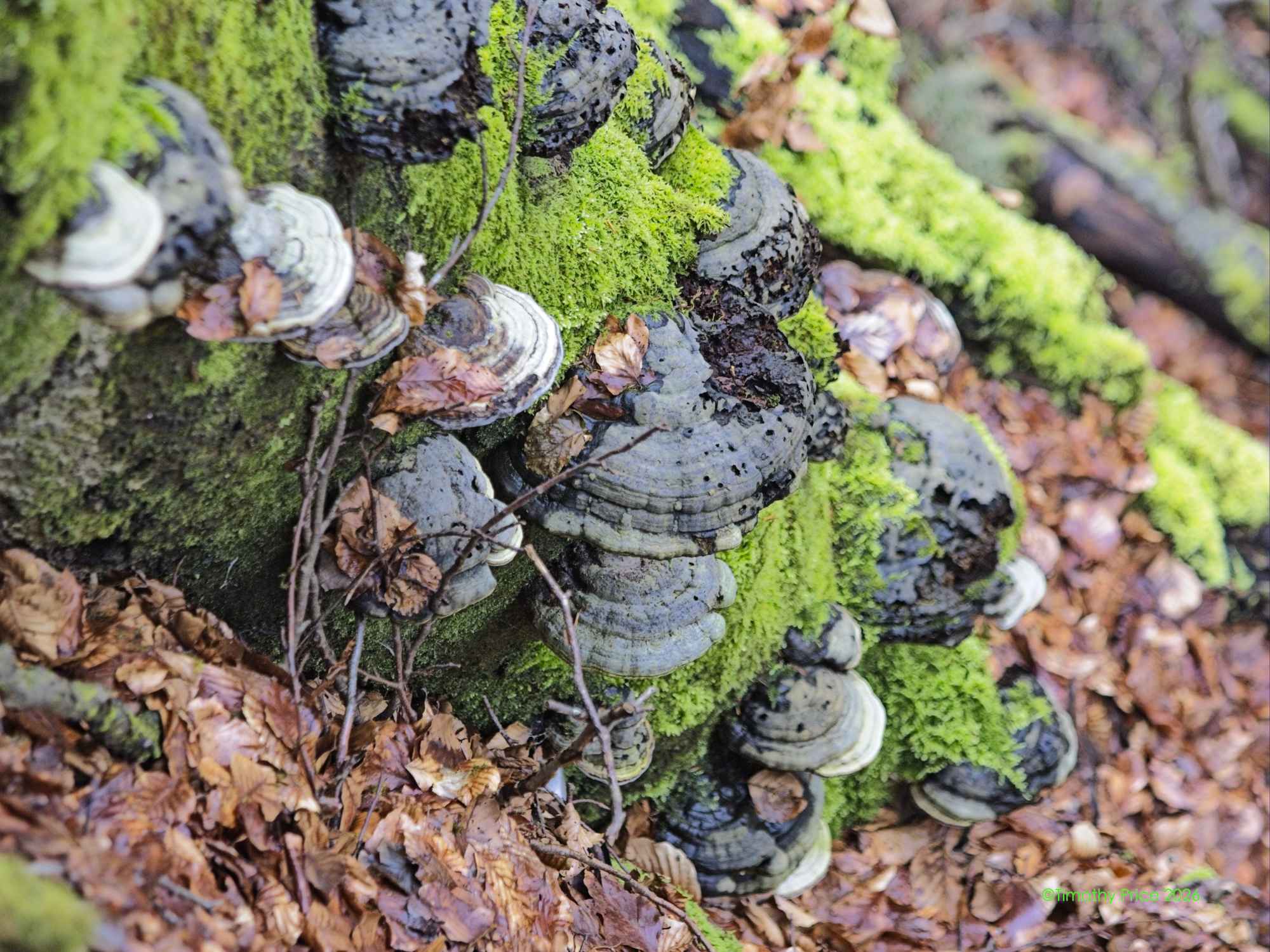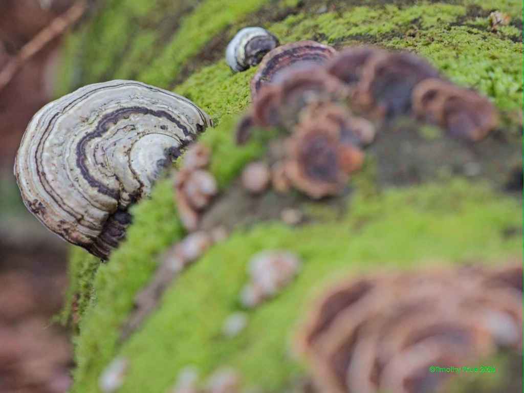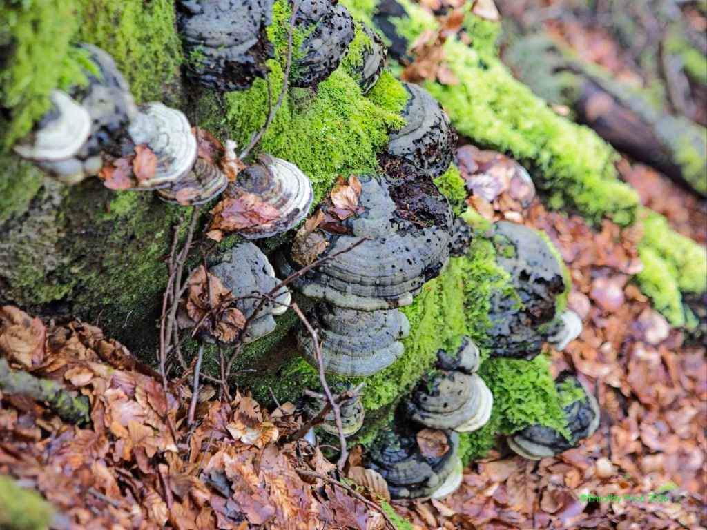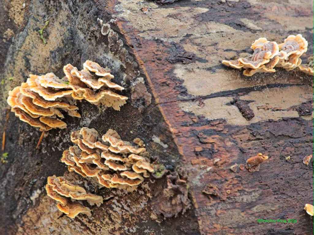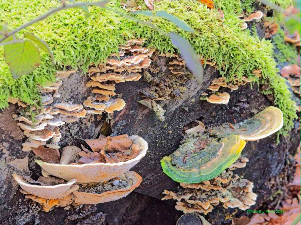 There was lots of fungus among us. I believe these are called polypores.