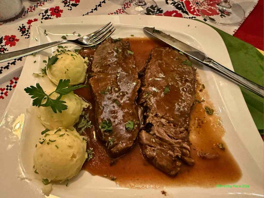 Roast in wine sauce and mashed potatoes or