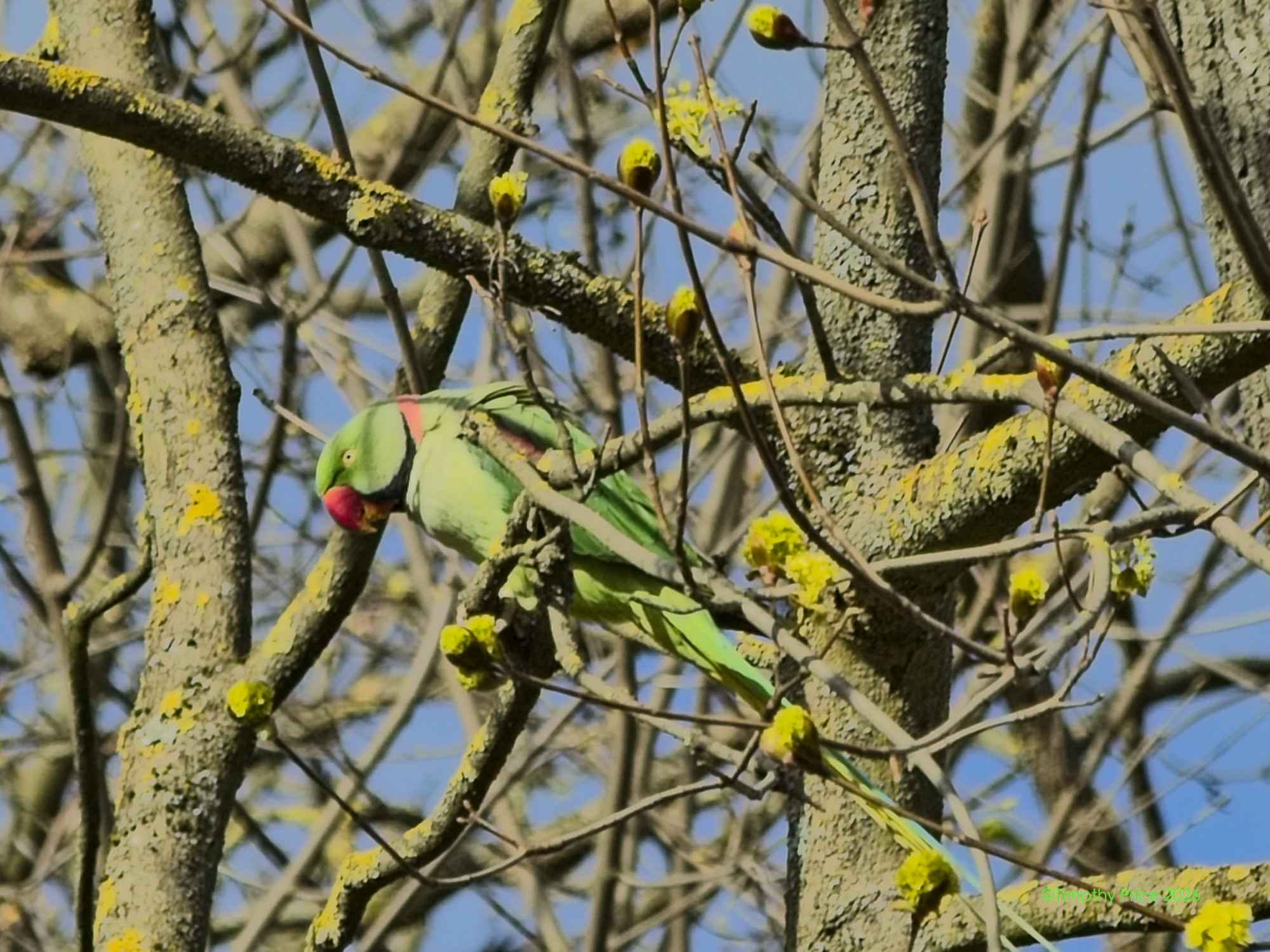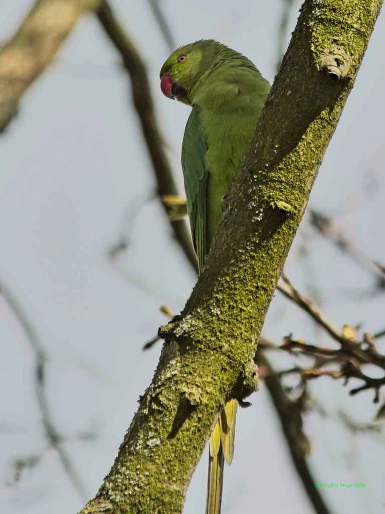 There were also Rose-ringed Parakeets in the trees. They are smaller than the two.