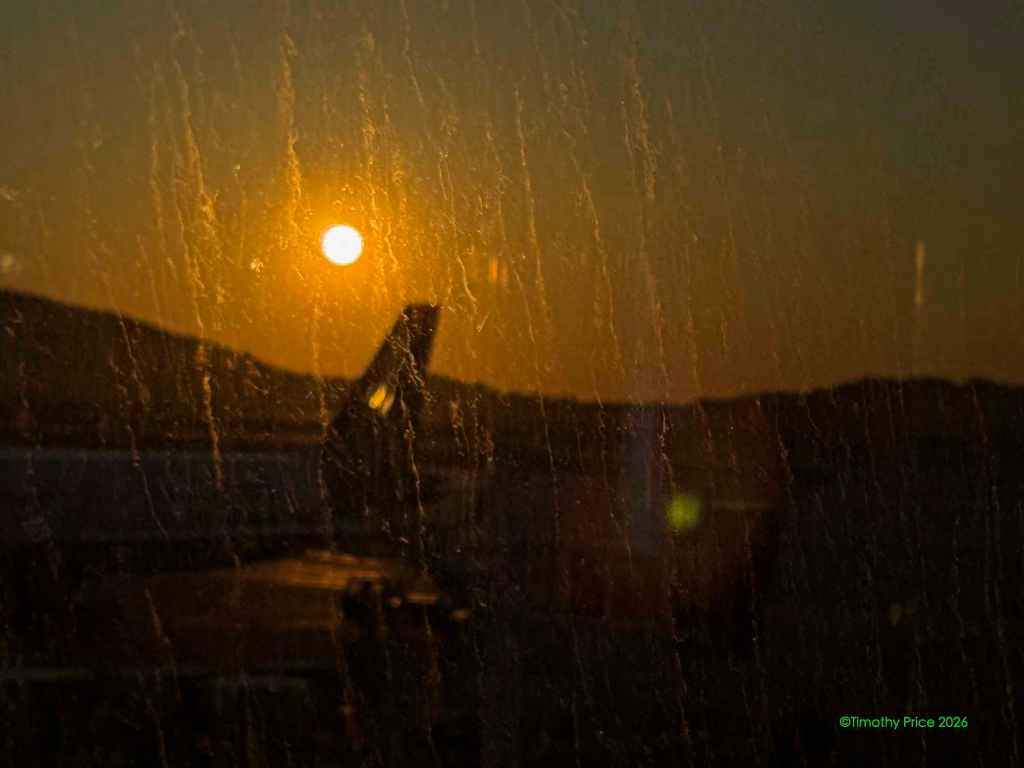 Sunrise In Athens, Sunset in Dundee April 7, 2026 Timothy Price1 Comment I had no five, geeAt twenty-eight thousand feet‘Twas all Greek to me