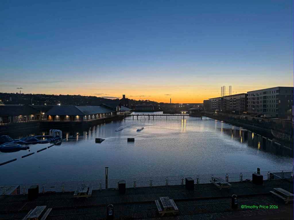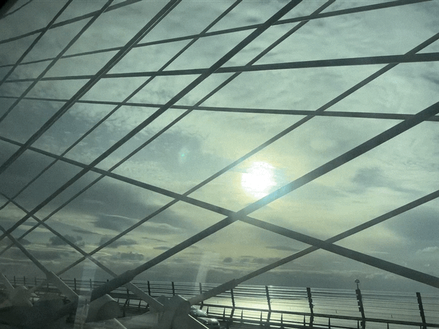 I was sitting in front of a window that leans out over the water.