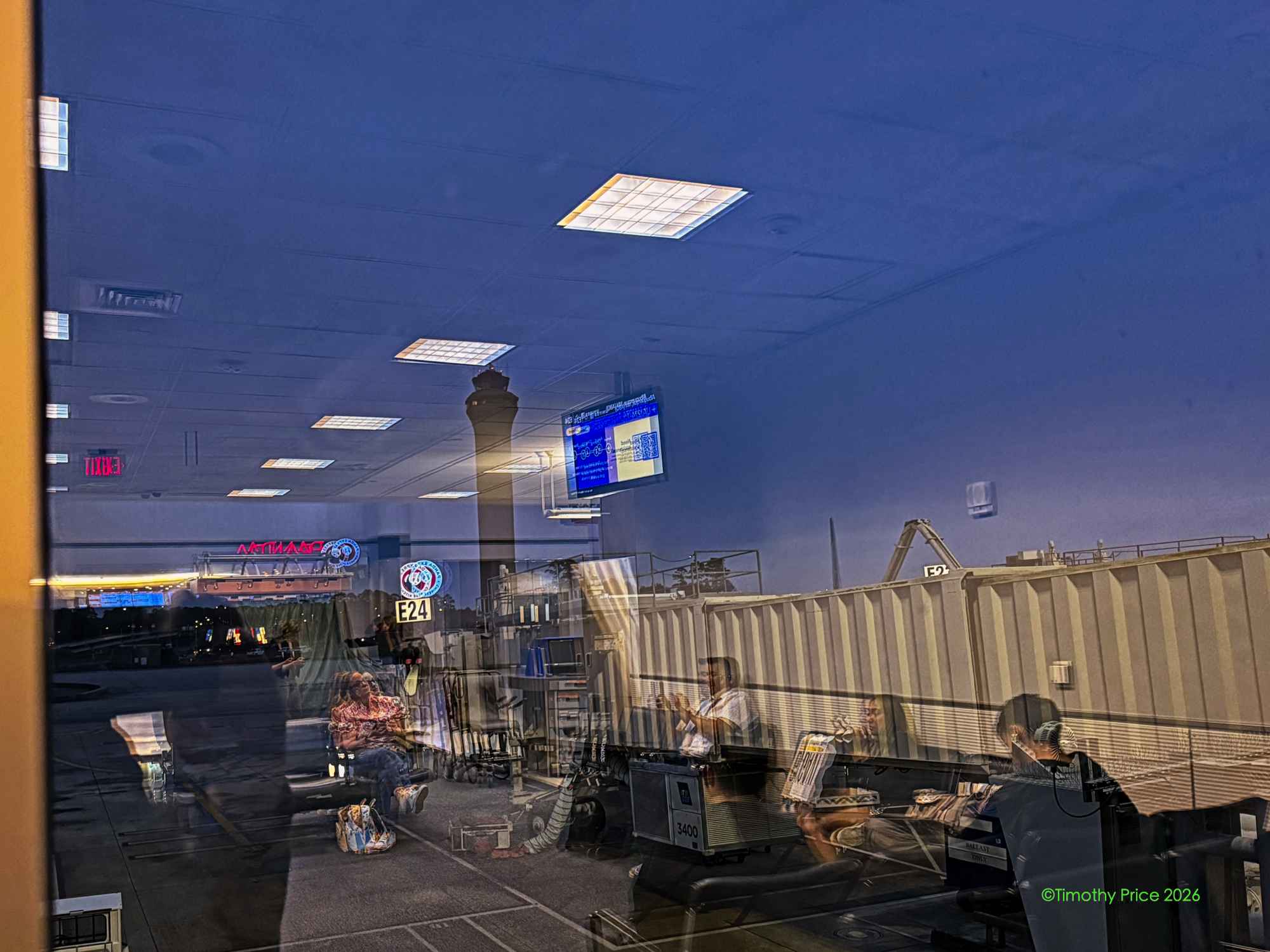 I am sitting in the airport in Houston, waiting for my flight to Albuquerque. The flight is delayed.