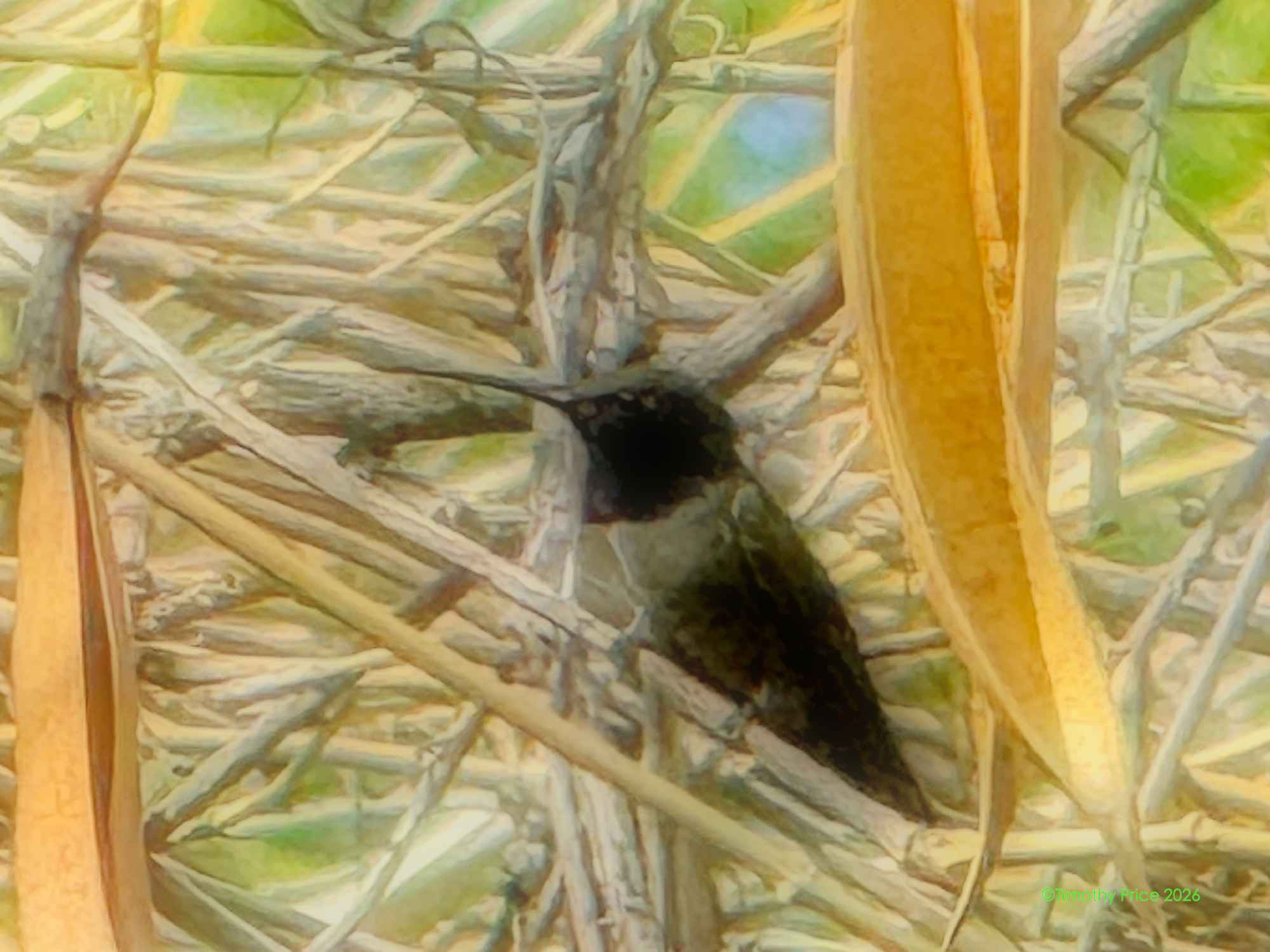 The humming bird that was buzzing aroung us while the mystery kitty was eating.