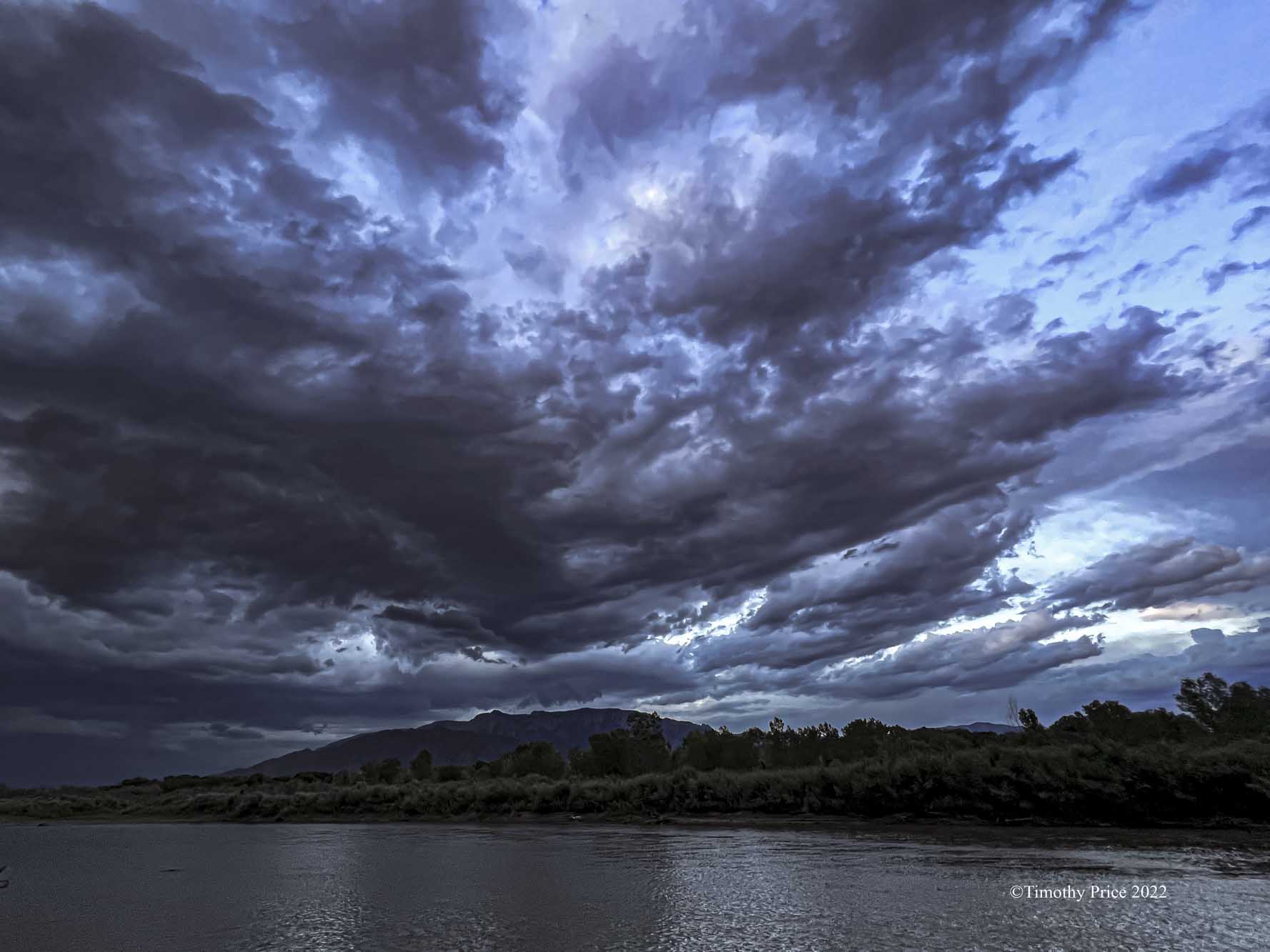 I walked out to the river at dusk to see if I could get the moonrise. Only gray clouds from the approaching storm.