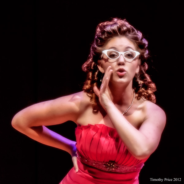 The show is at the Musical Theatre Southwest Black Box Performance Space, which is a small, intimate theater where the performance space is larger than the space allocated for seating (about 100 seats), which gives the allusion that the number of performers are about equal to the audience members. When the full cast is on stage dancing and singing the intimacy, activity, variety of colors and the performers expressions are so exciting that it all becomes almost overwhelming trying to decide who to watch — you can’t take it all in at once like you can in a larger theater.