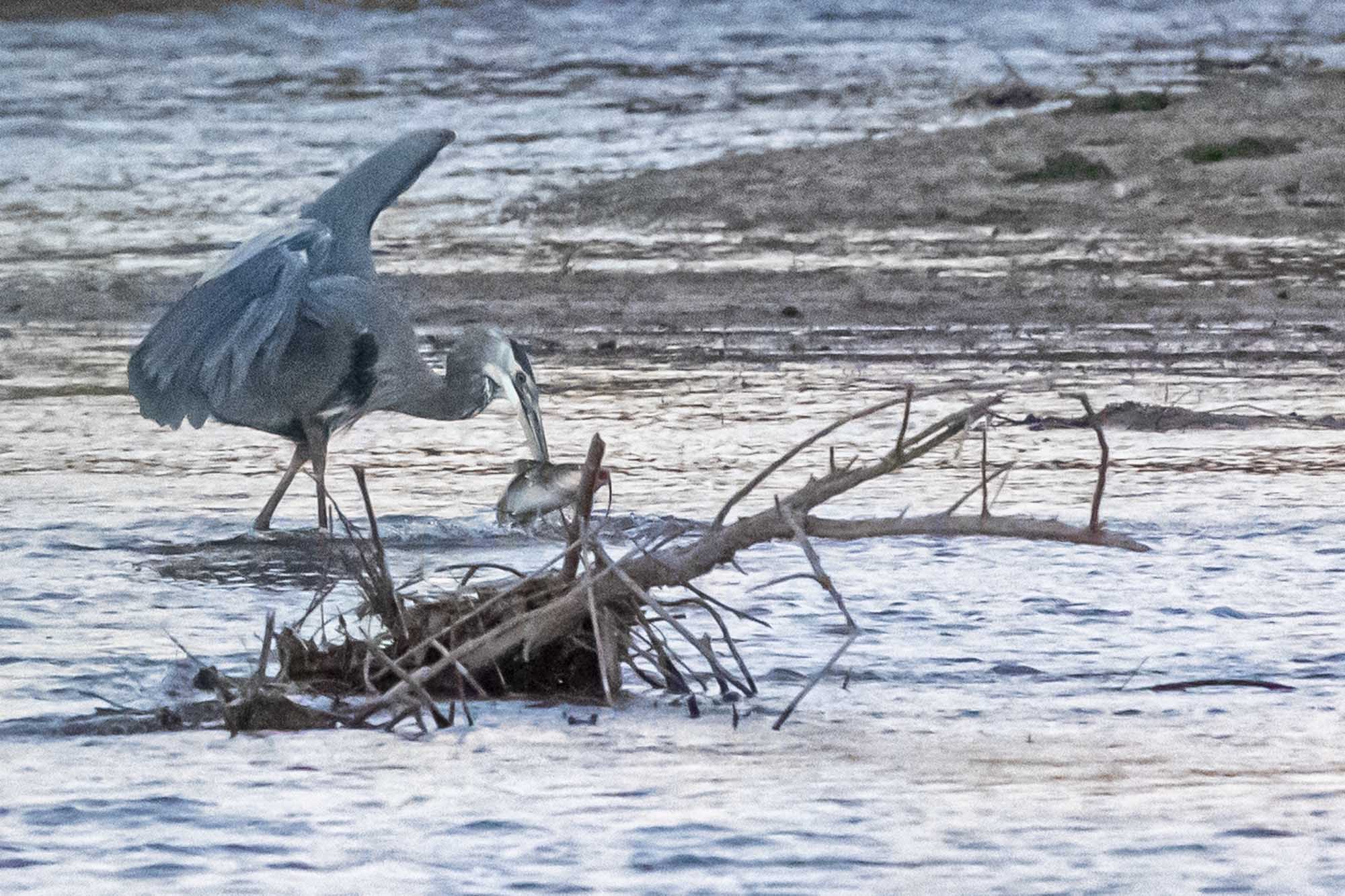 Speaking of free will, the pTerodactyl killed a large carp tonight when I was out and the river. He didn’t eat it. He just left it on the shore and walked out into deeper water. That is the second time I have witnessed the pTer killing a large fish and not eating it. Did the pTer commit pescadocide of his own free will? Was the carp’s fate to be stabbed to death by a pTerodactyl? Is the pTer determined to kill all large fish because he can’t help it? Or is he simply an evil bird?