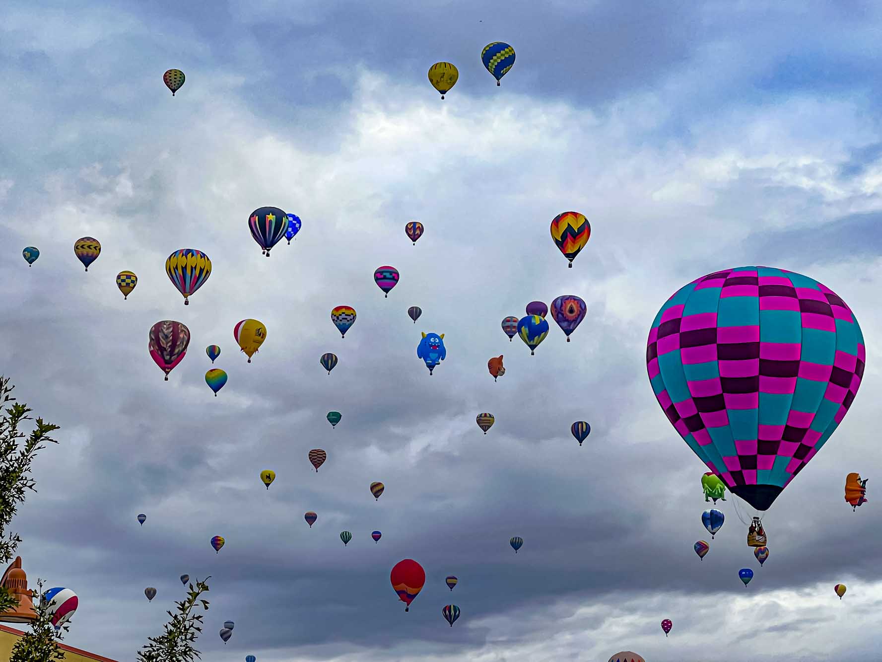A mini mass ascention. The Balloon Fiesta begins on Saturday.