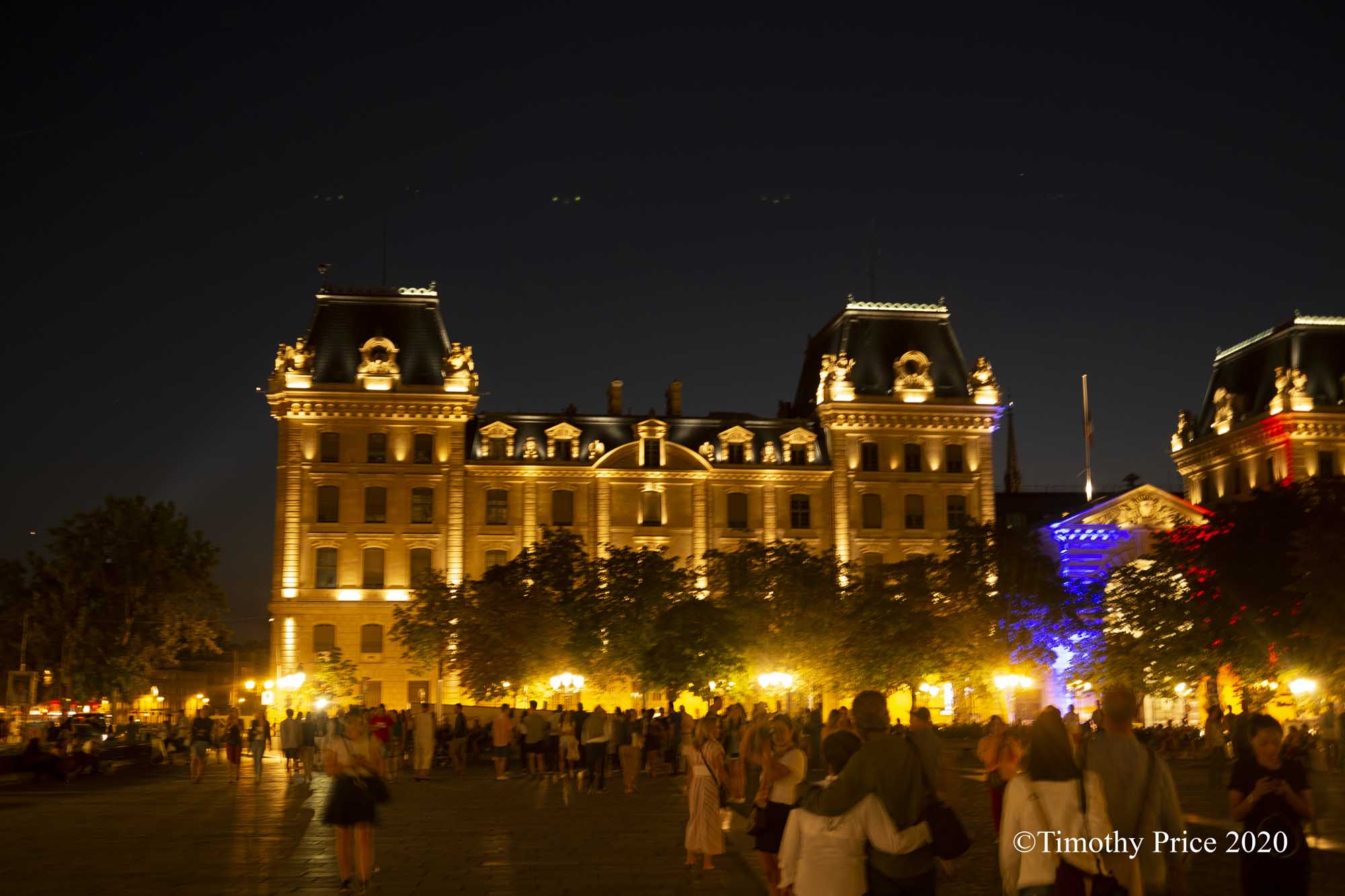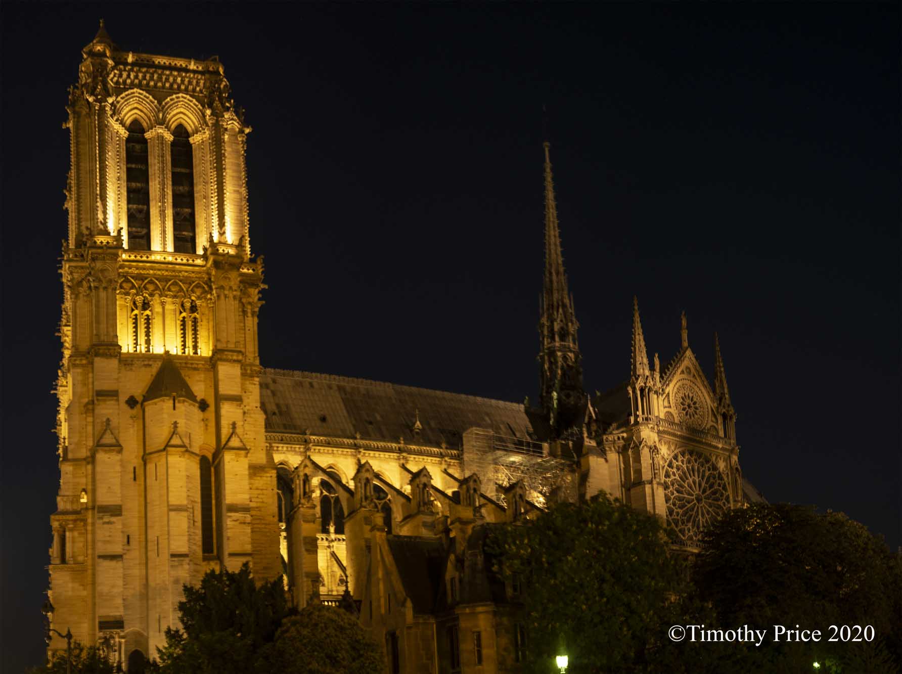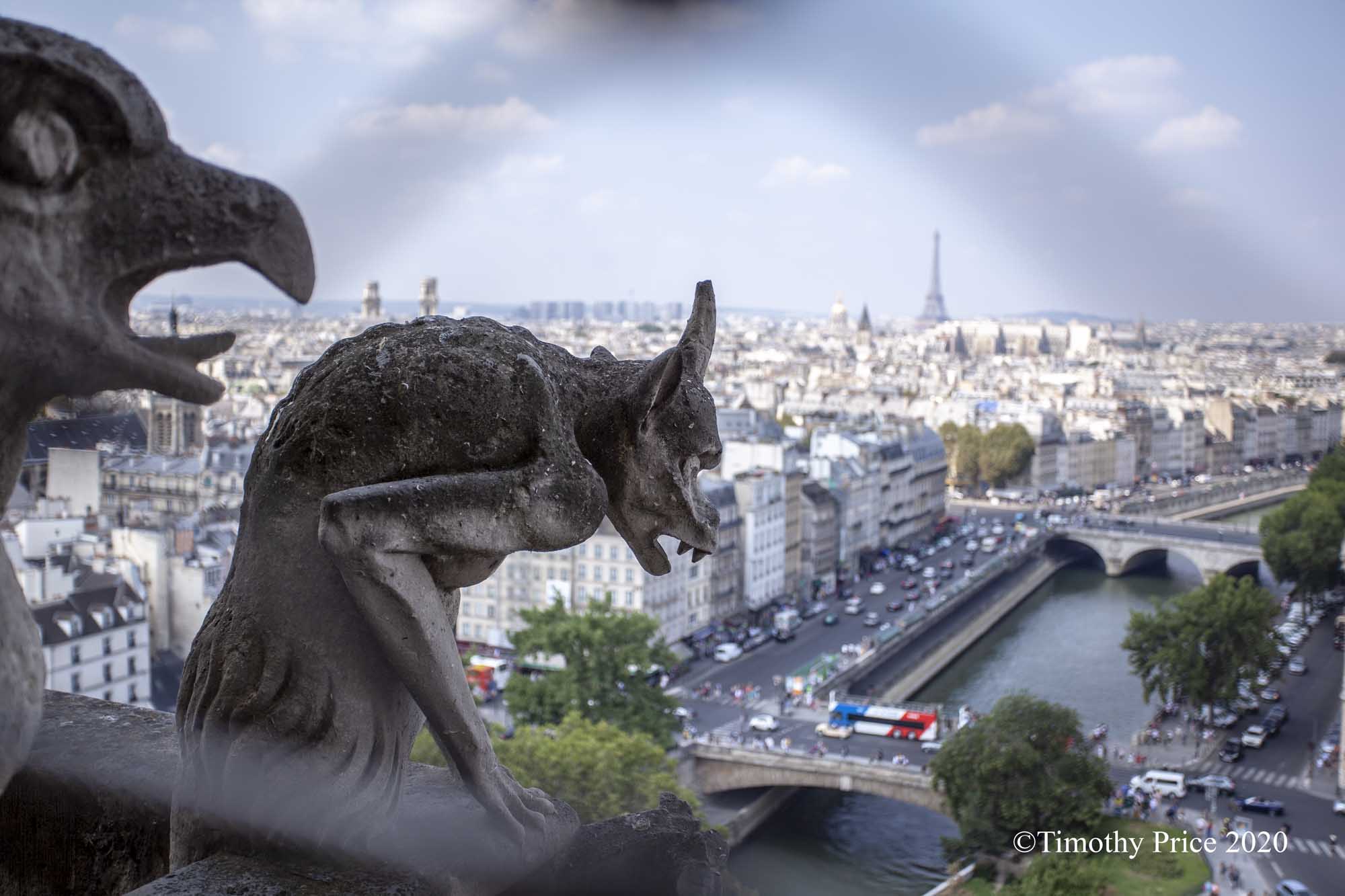 We stayed in a hotel inside the roof of a hospital that was rebuilt in 1380 and then remodeled in 1801 to remove the church-like façade. The hospital is catercorner to Notre Dame. The hospital is a labyrinth and it was very difficult to find the hotel when we first arrived. After 8:00 pm security had to ring us in through a side door, and we often had a heavily armed military unit follow us into the passage. One day when the military unit was making its rounds through the hospital, one of the men broke guard, stopped me, and asked me about my cameras and lenses. He was into photography and we chatted for a few minutes then we rejoined the unit.