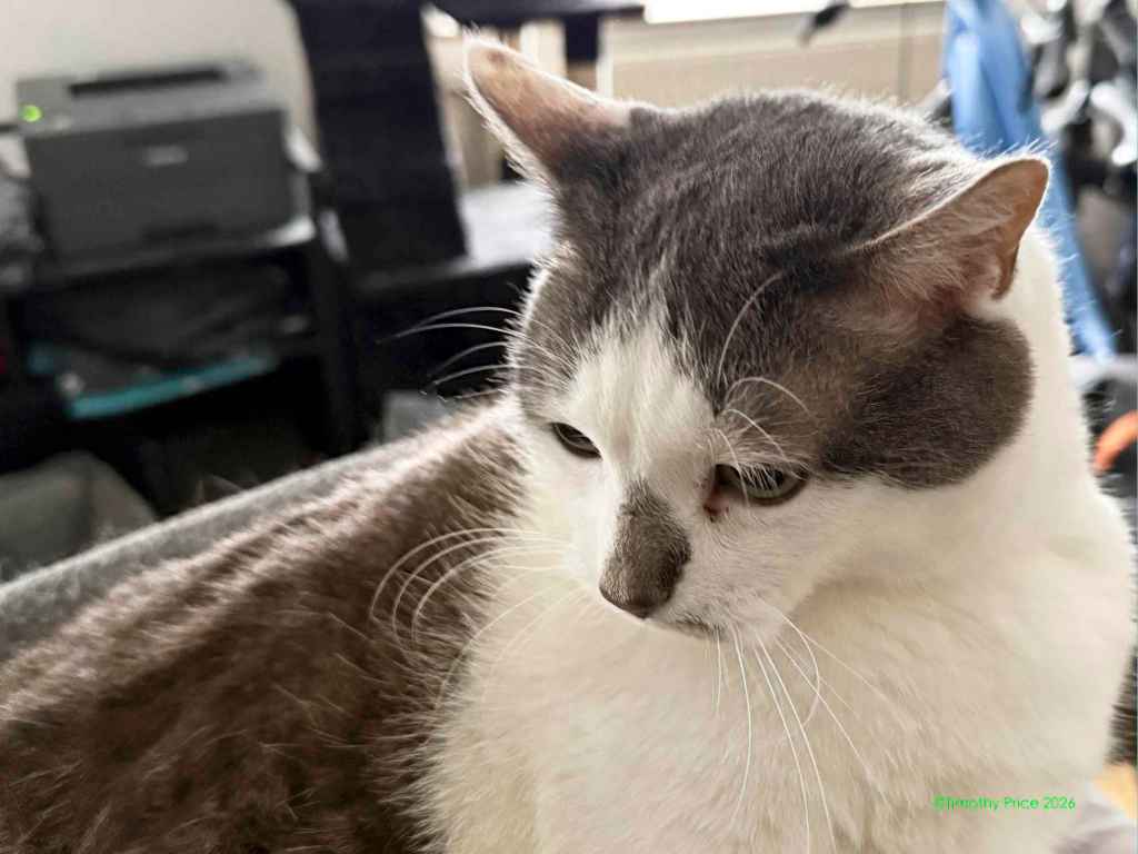 Atlas enjoying a rare sunbeam in the window sill