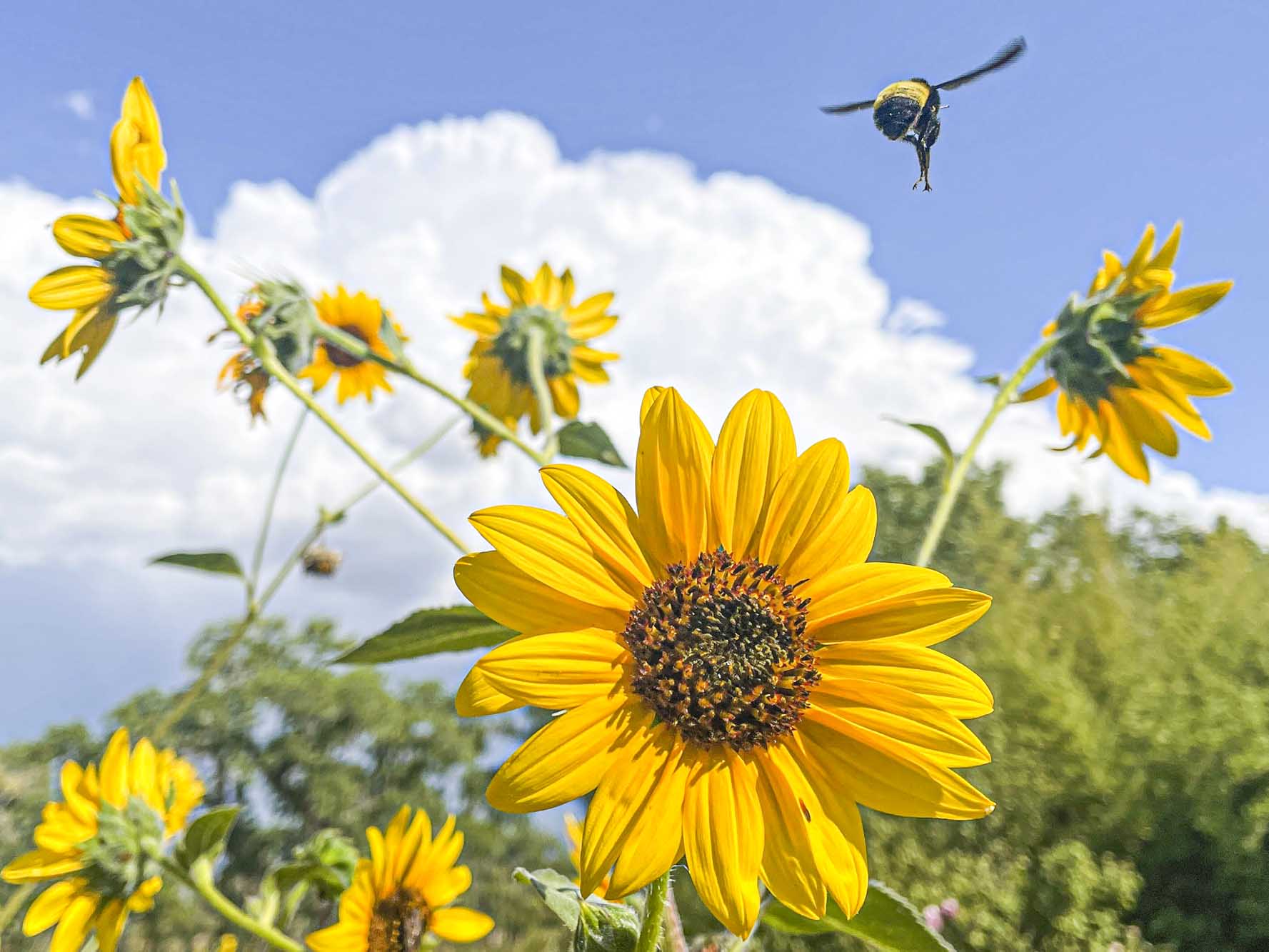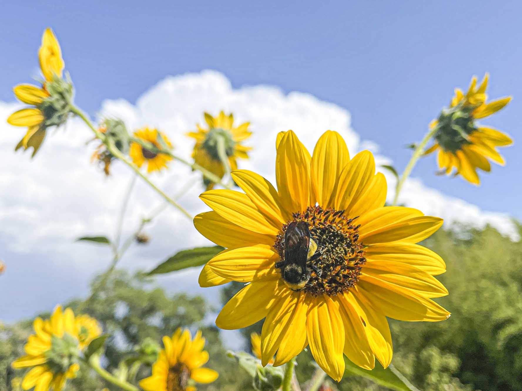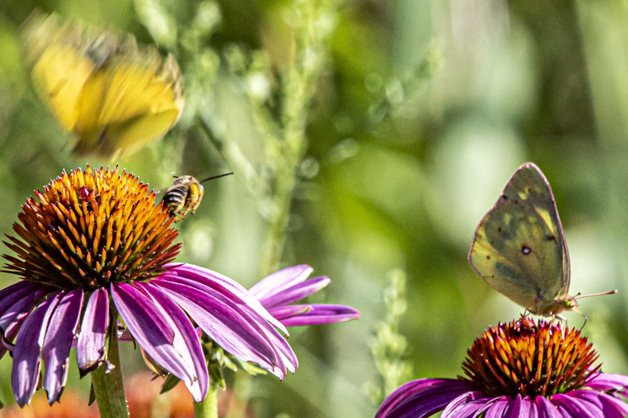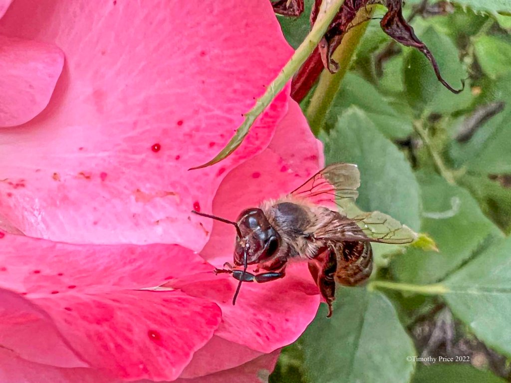 This native bee was working the Shasta Daisies. The insects really love the Shasta Daisies while they are in bloom.