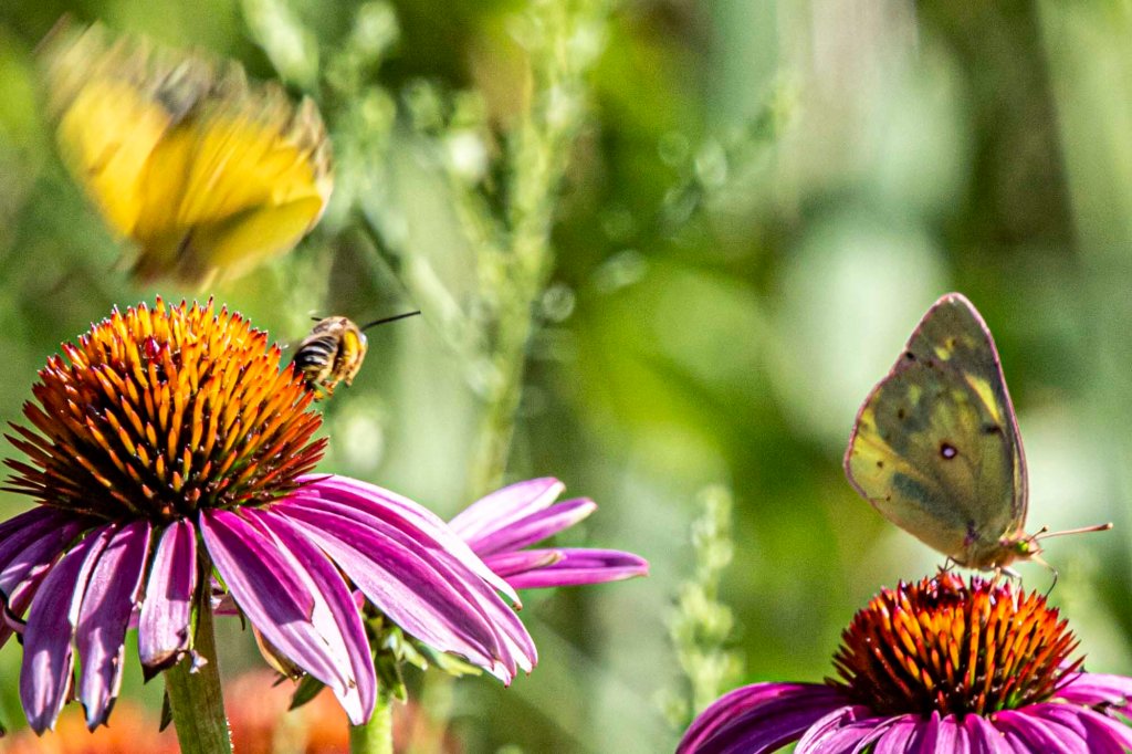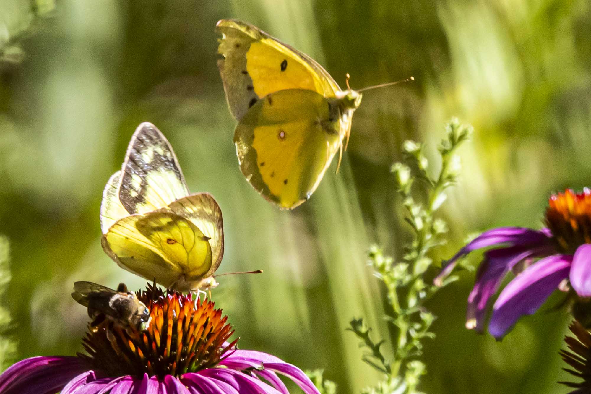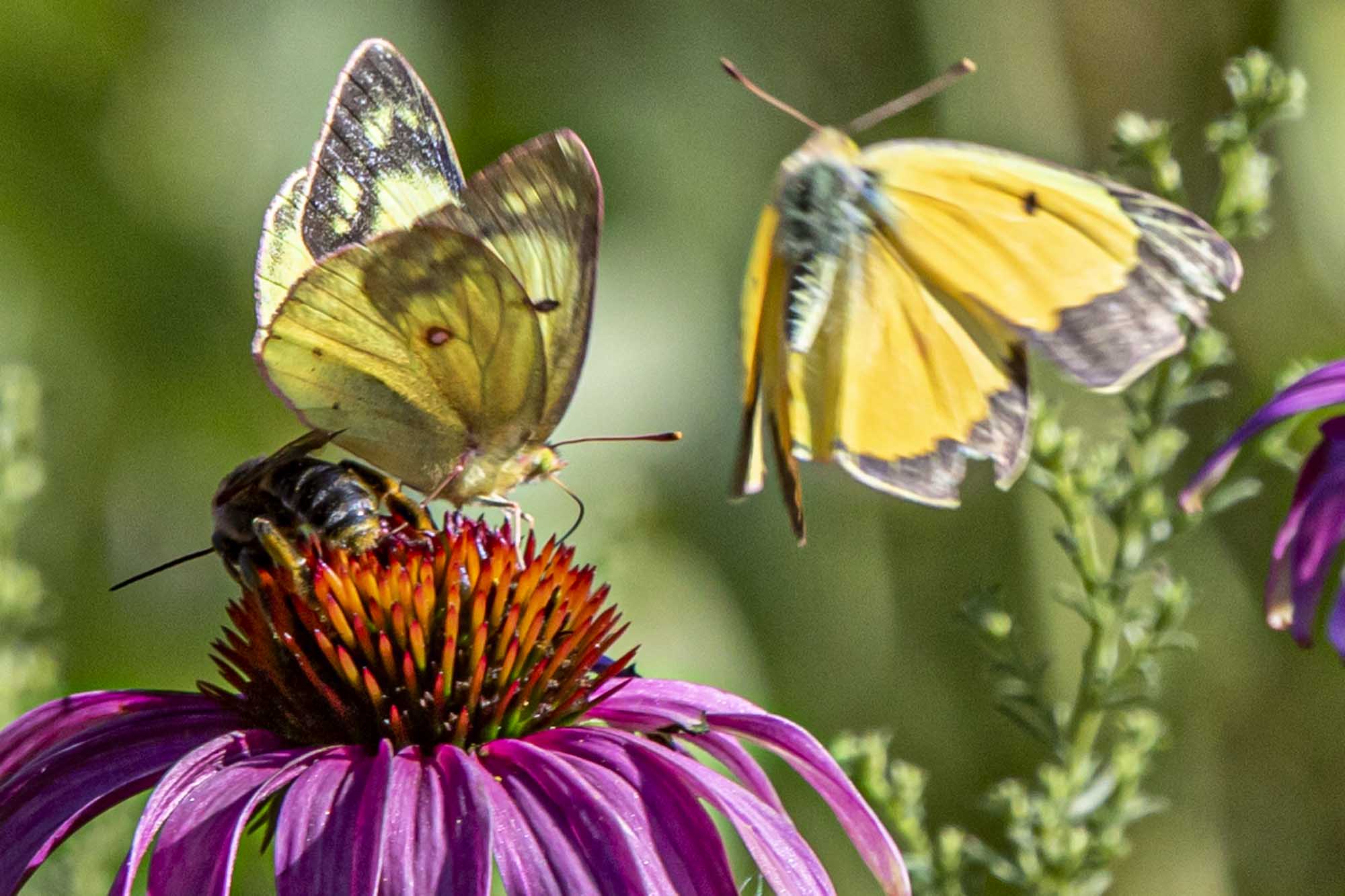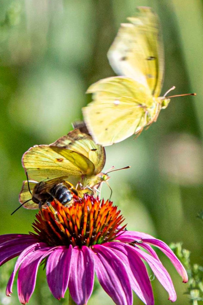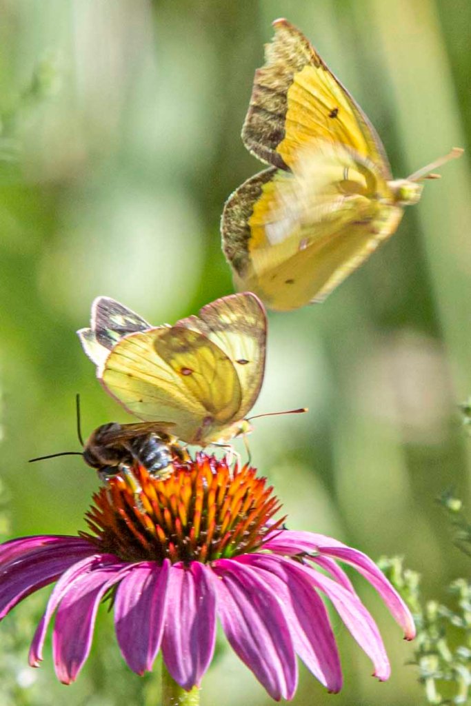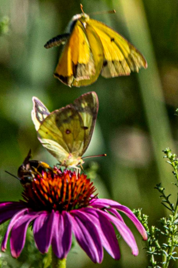 A Pearl Crescent butterfly was also enjoying the Shasta Daisies this afternoon.