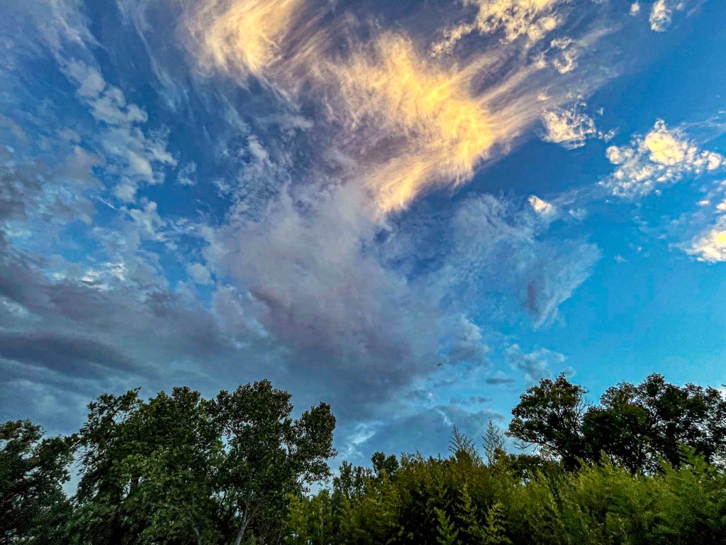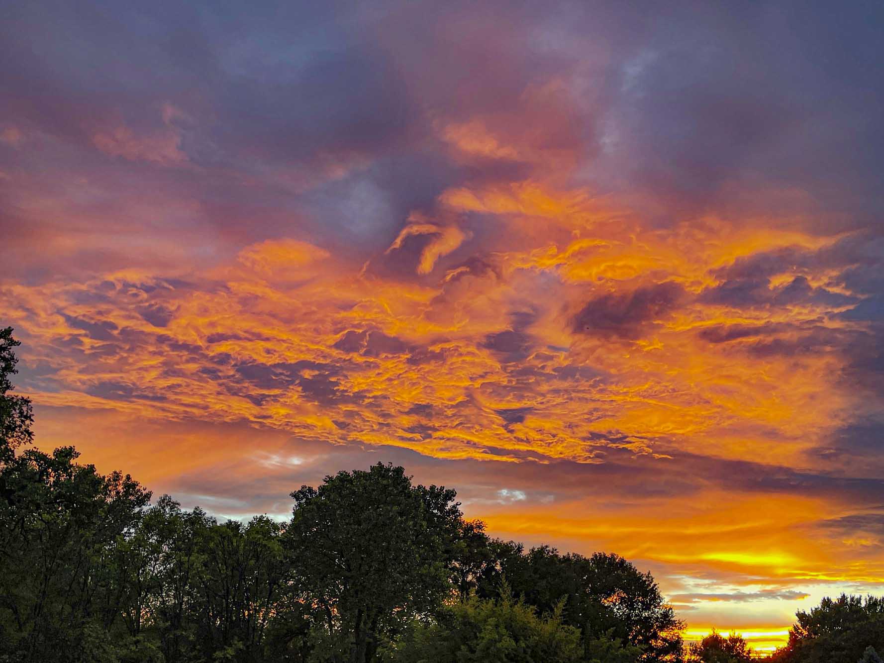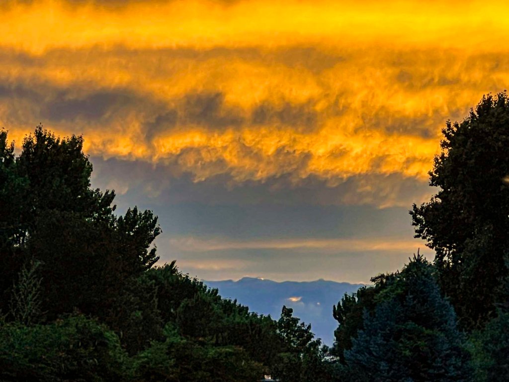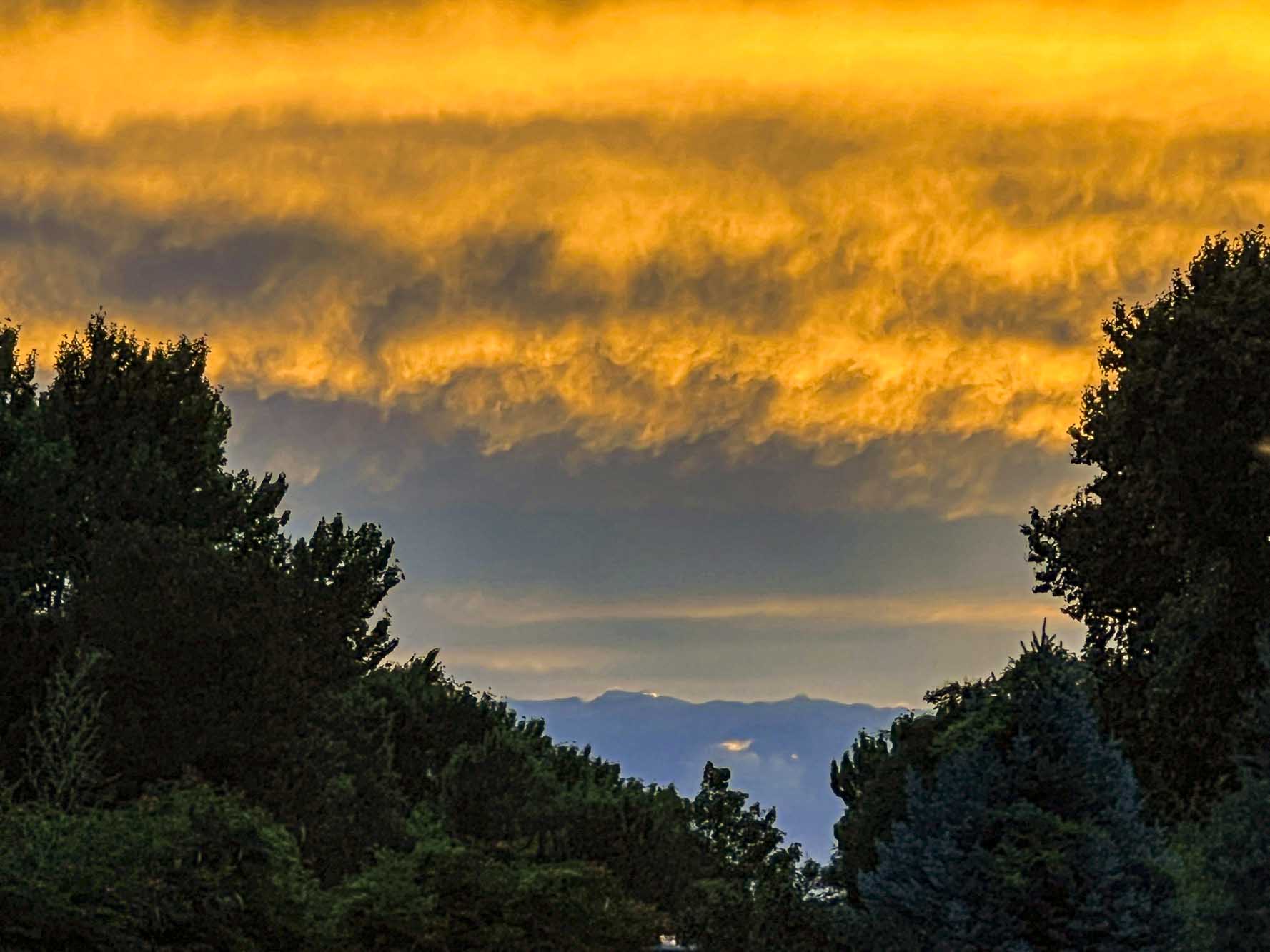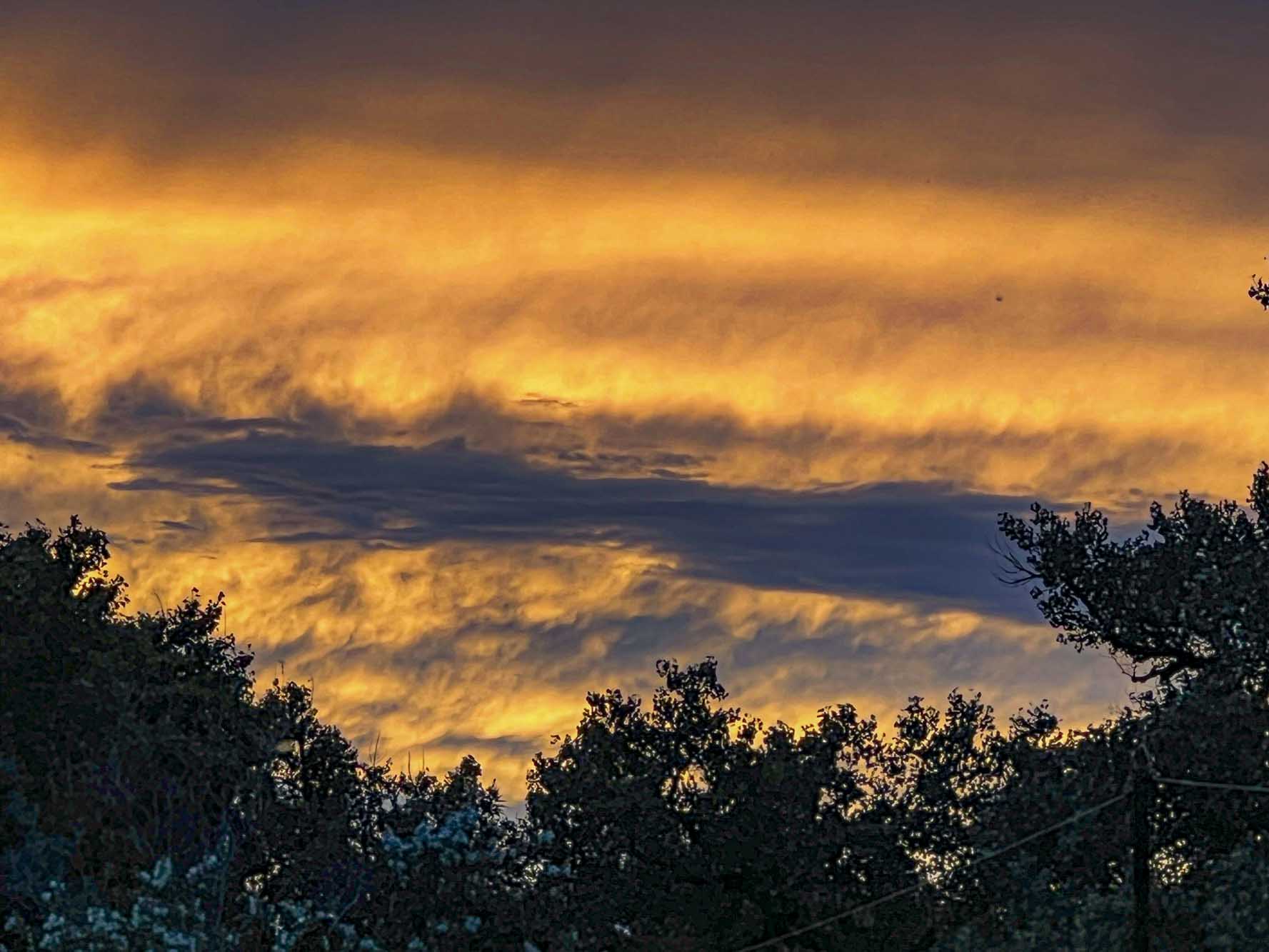 Closer to sunset around 8:15 pm east/southeast. From left to right: Tiffany’s tree, Gabriela’s tree, Gigi’s tree, Teagan’s trees behind Gigi’s tree, and Susan’s tree.