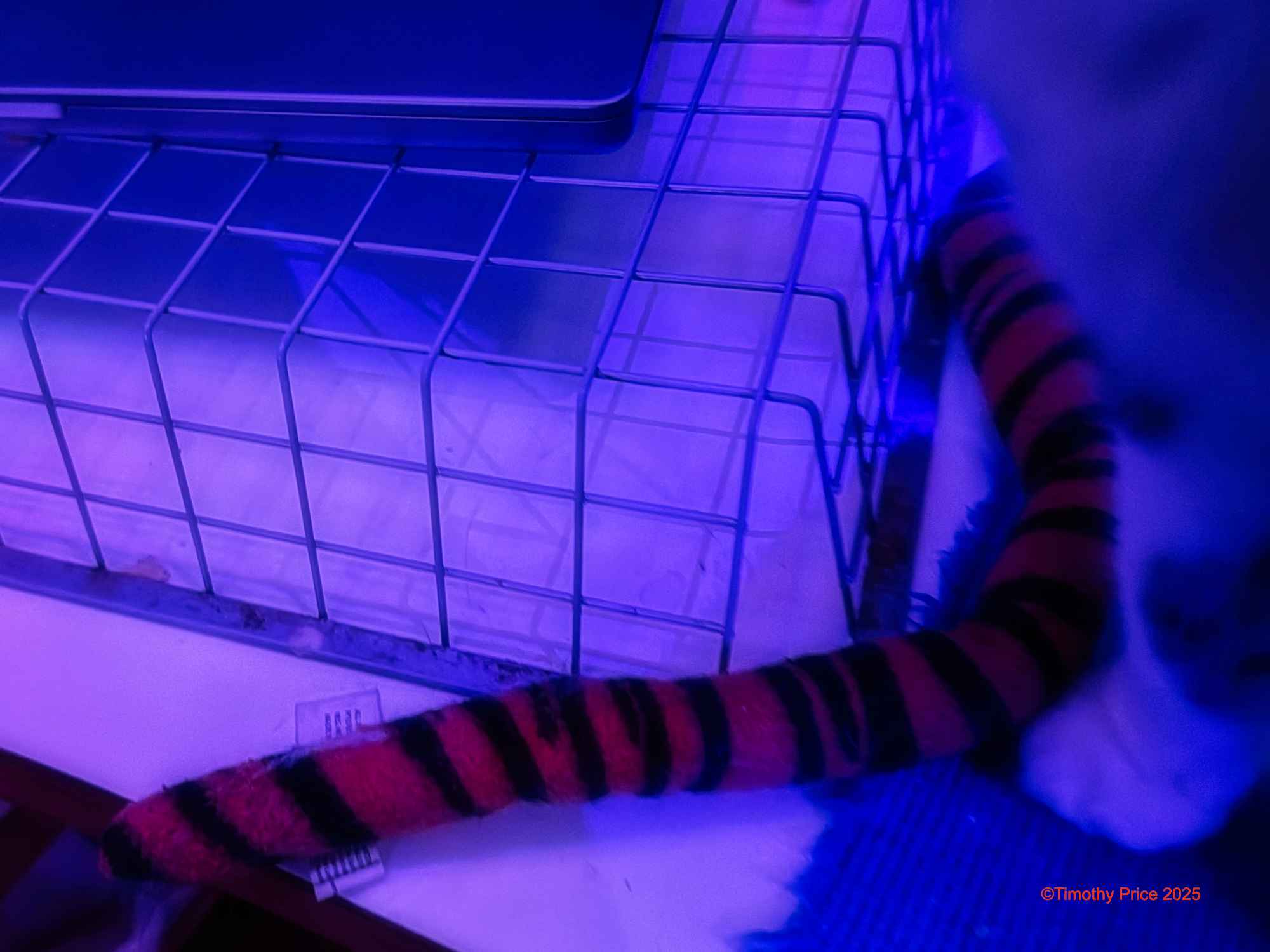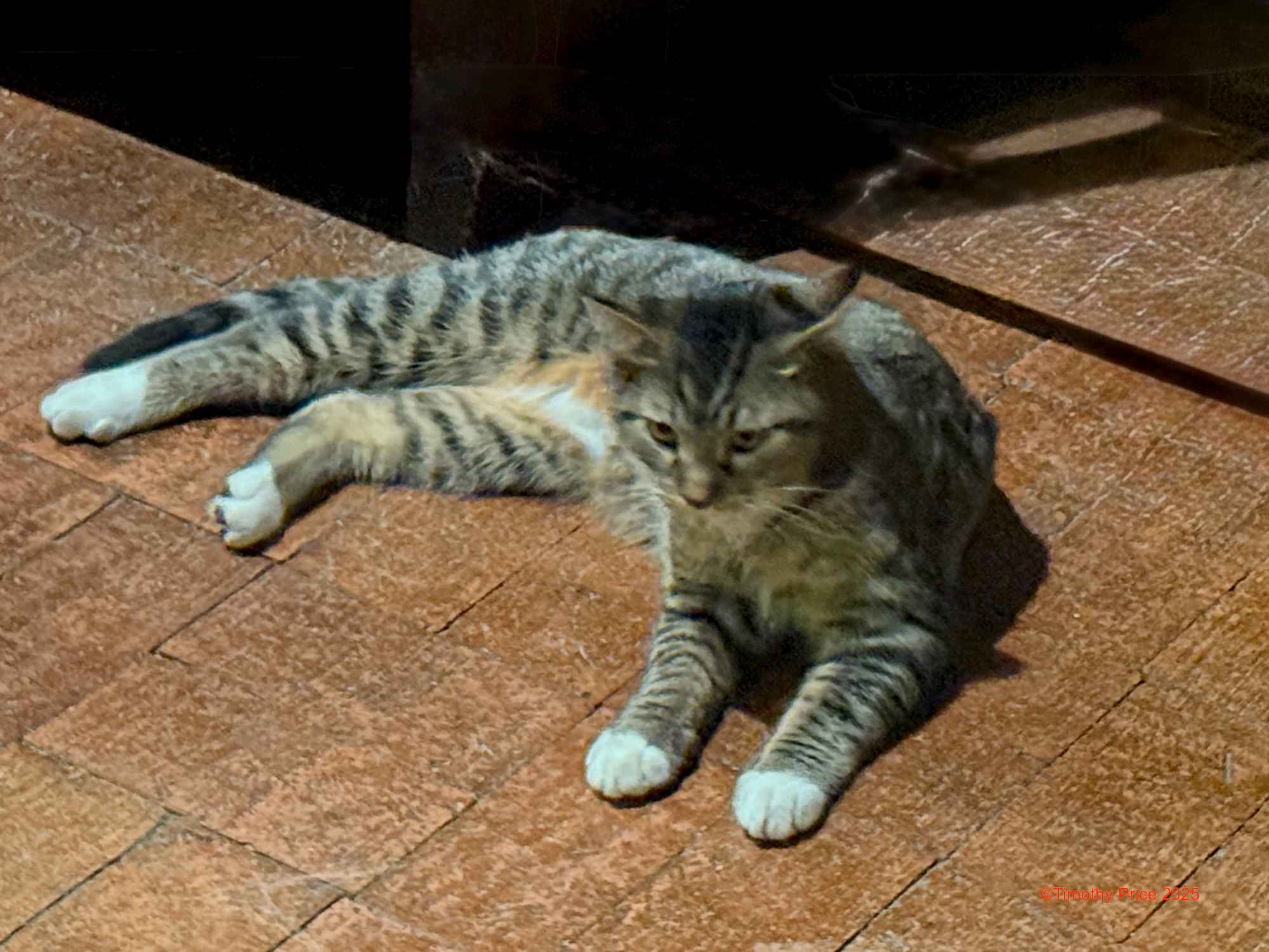 Tycho Kitty is lying on the floor, contemplating Jake.