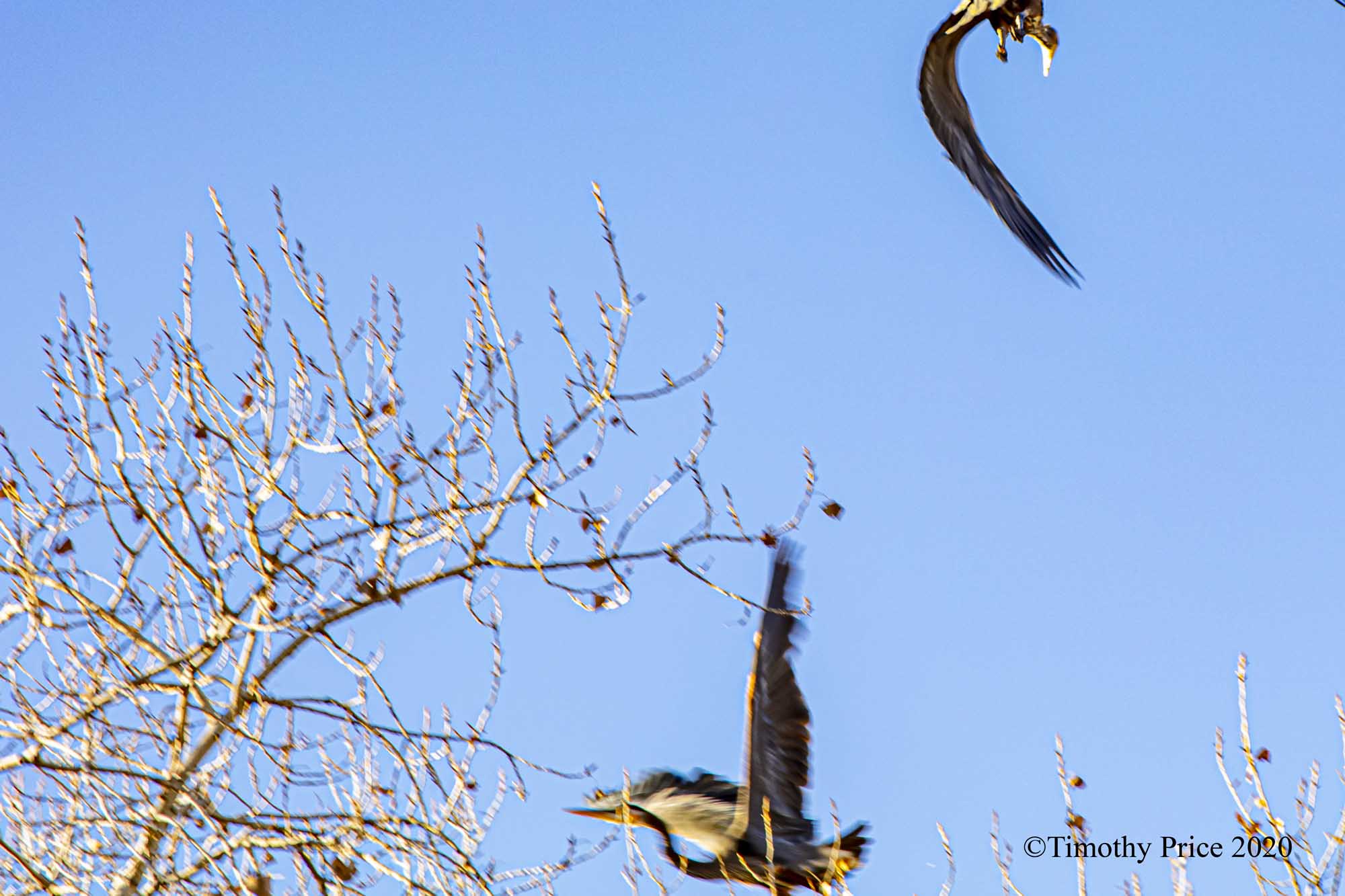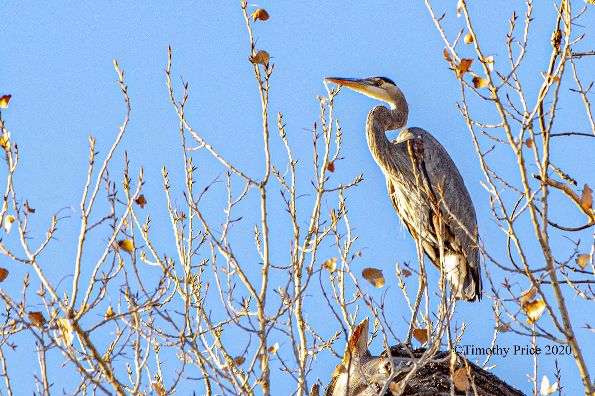 The Pterodactyl was sunbathing in a cottonwood and took a flight when he got tired of the paparazzo photographing him. He landed on another cottonwood across the ditch. No sooner than he settled in, another Pterodactyl flew in a took his place.