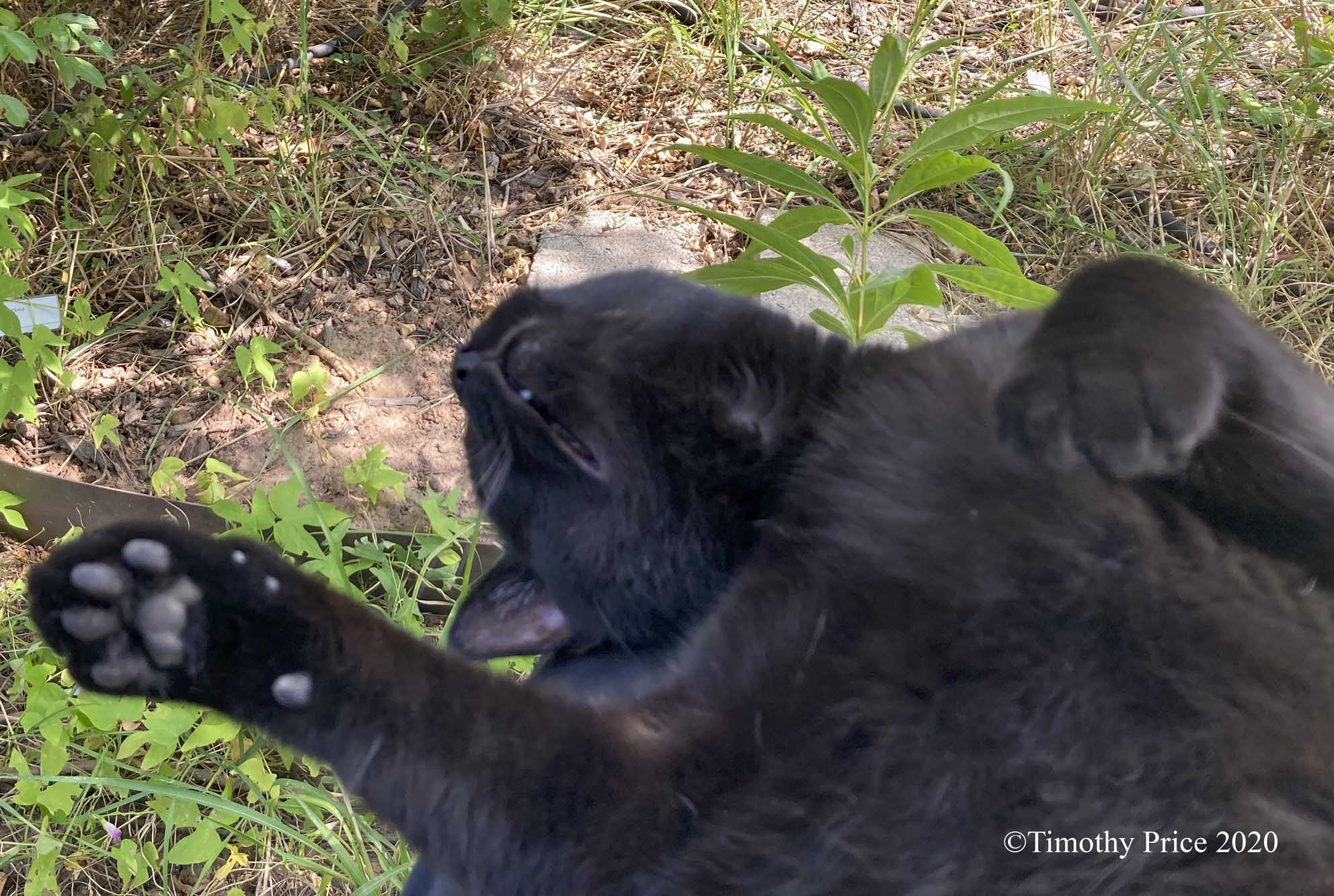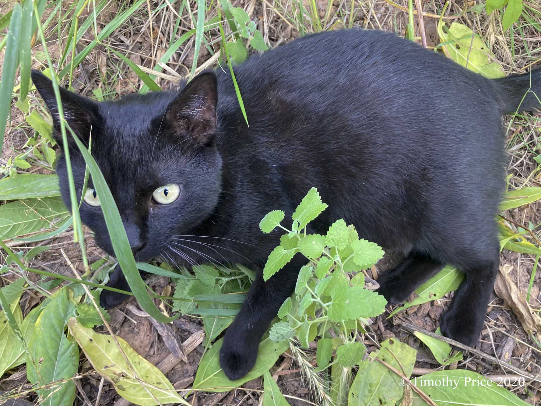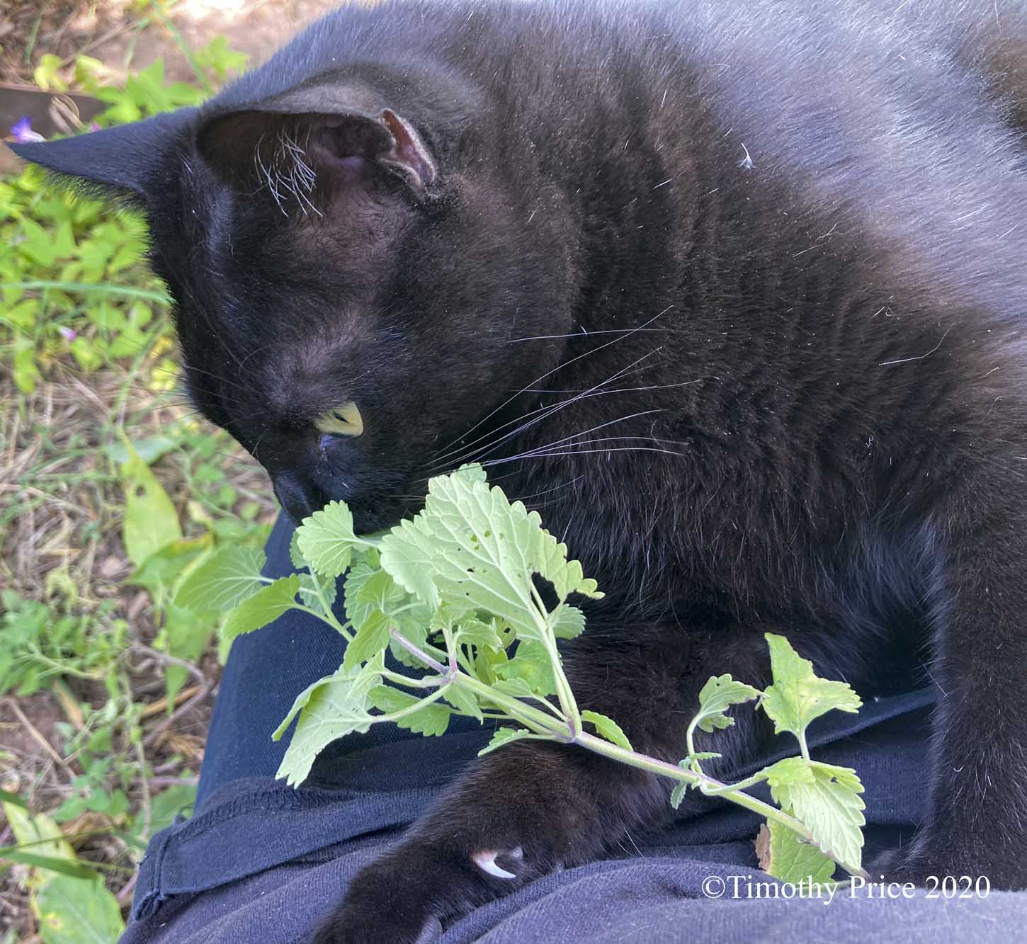Laurie picked catnip for the kitties while she was out for one of her hourly step goals. Gwendolyn was like a kitty demon eating her sprig of catnip.