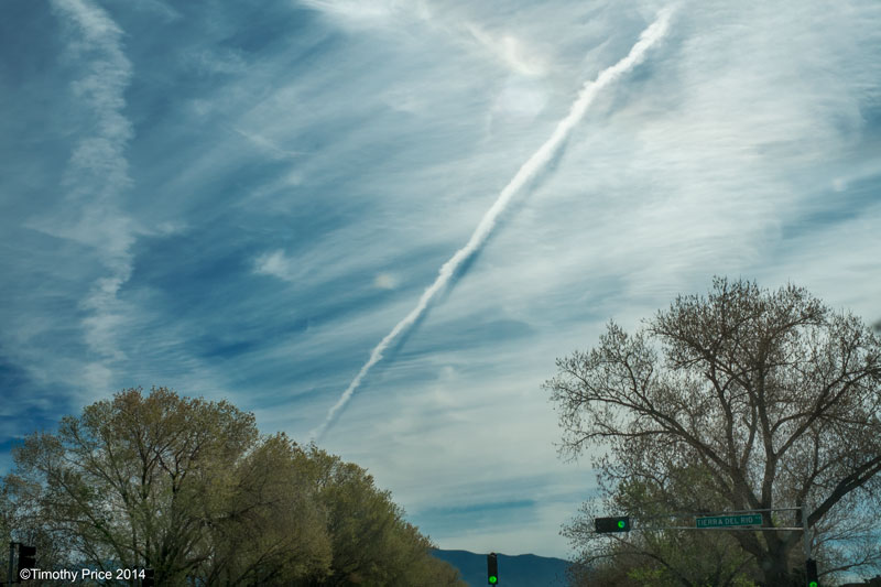 The “chemtrails” as some people call them, more commonly known as “contrails”, made quite interesting patterns crisscrossing under the sun this morning. As the temperatures continue to warm, I’m seeing a lot more bikers on the road. Laurie left the door open to the study so the cats could be in it with her the other night — Puck was very happy to lay in his favorite spots he missed since I put the door on the study.