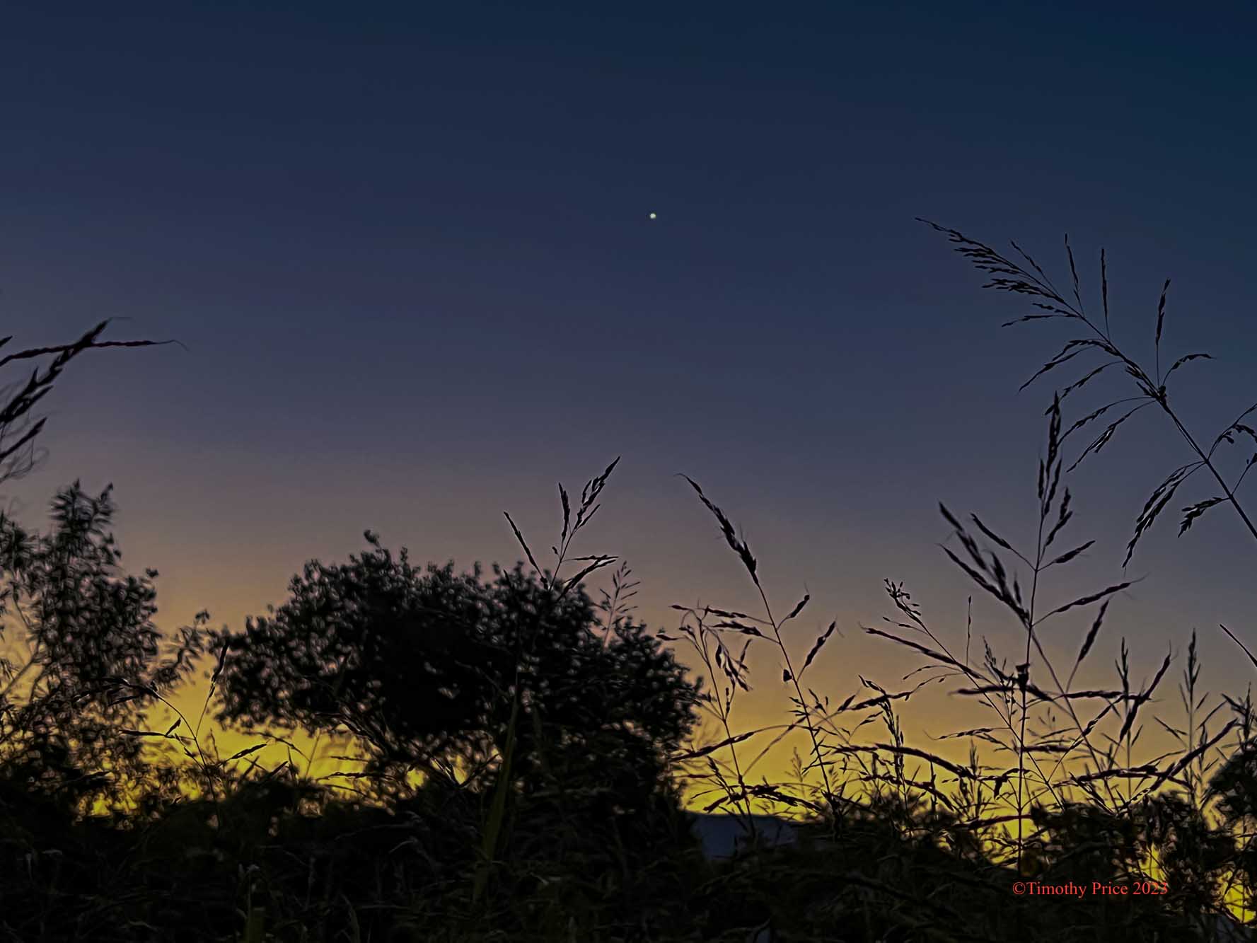 The Moon, the Pleiades, and Jupiter are across the top of the photo early this morning.