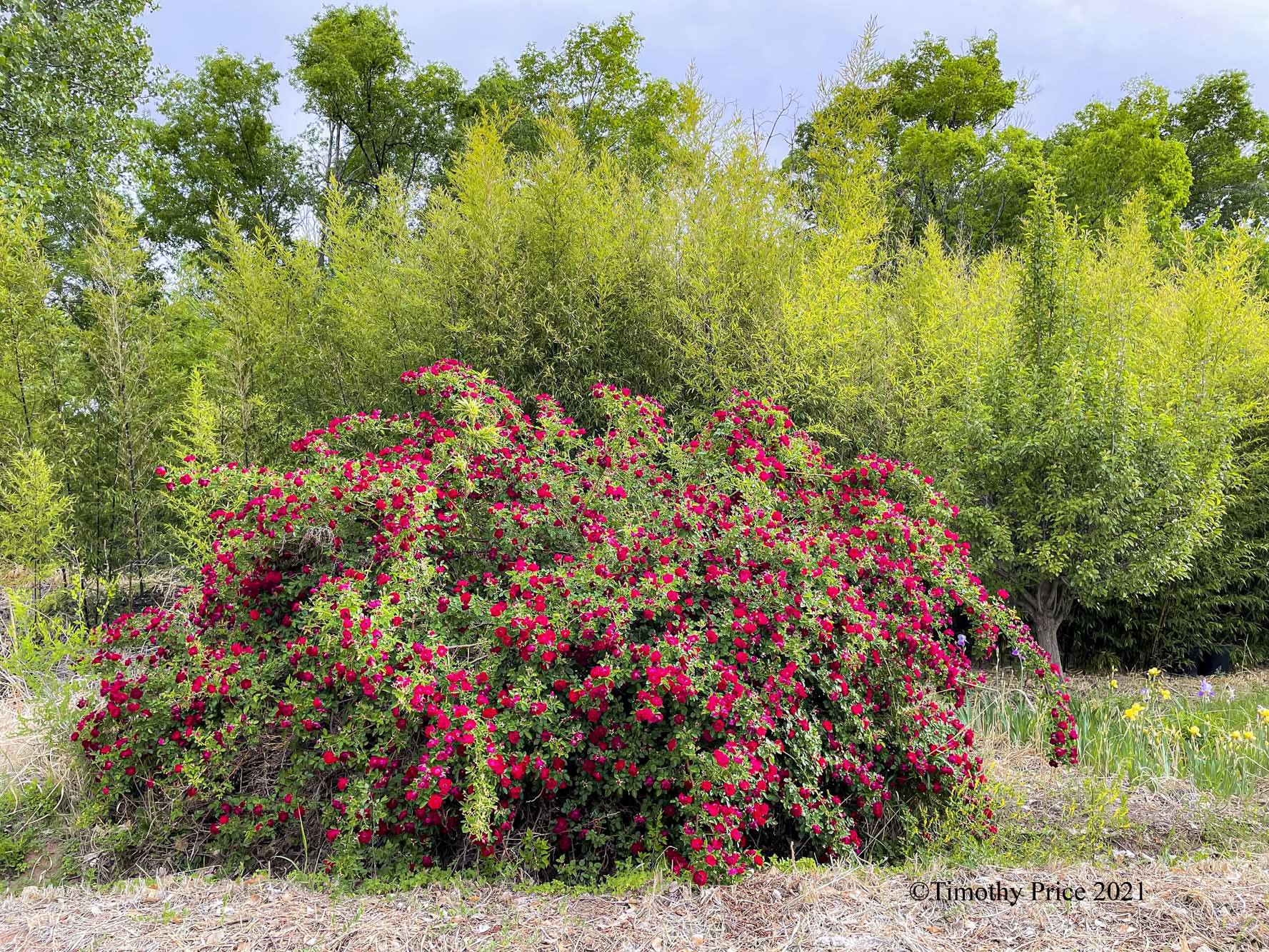 For new followers, Dr. Huey is the rootstock used to graft roses in the western United States. Corrales is a cold spot. A lot of roses freeze at the bud unions in the winter killing the rose grafted to the rootstock. Dr. Huey is cold hardy and drought tolerant. Once the bud union is dead Dr. Huey grows. Therefore, there are many Dr. Hueys growing in Corrales. Starting in 2014, we had done an annual tour of Dr. Hueys in Corrales or simply on our property since we have more Dr. Hueys every year.