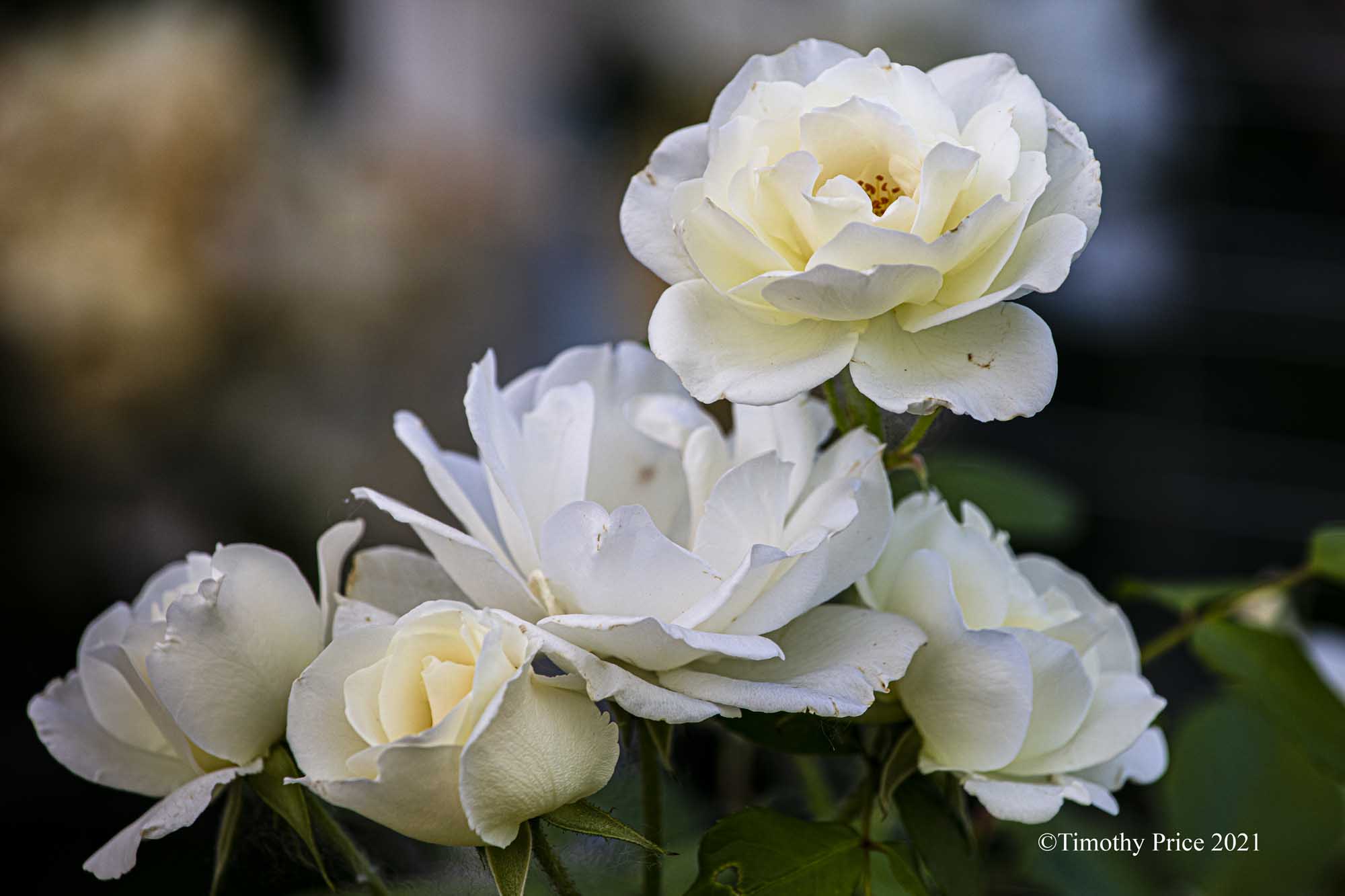We have one Shasta Daisy so far this year. You can see a crab spider between the petals. Yellow and white roses tonight.
