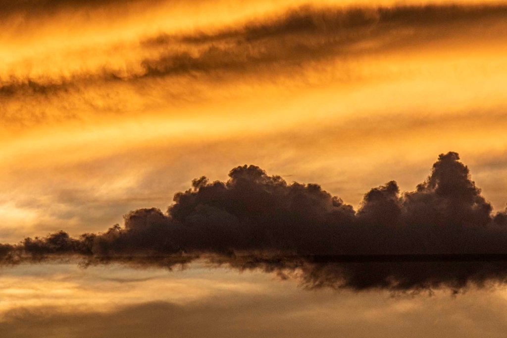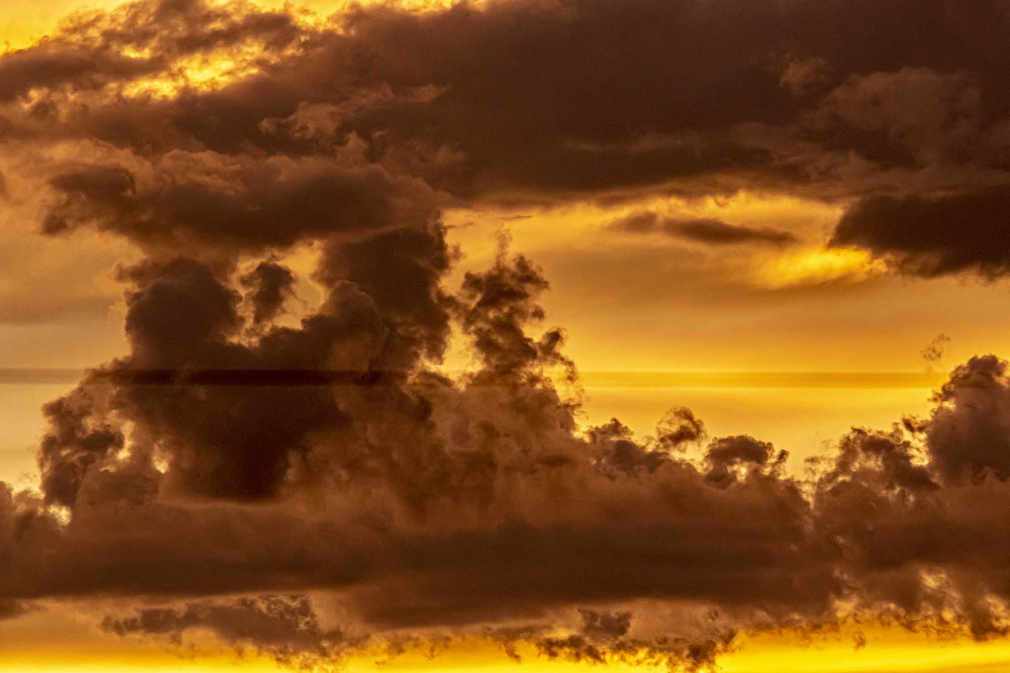 Dusk with lots of colorful particulate in the air.
