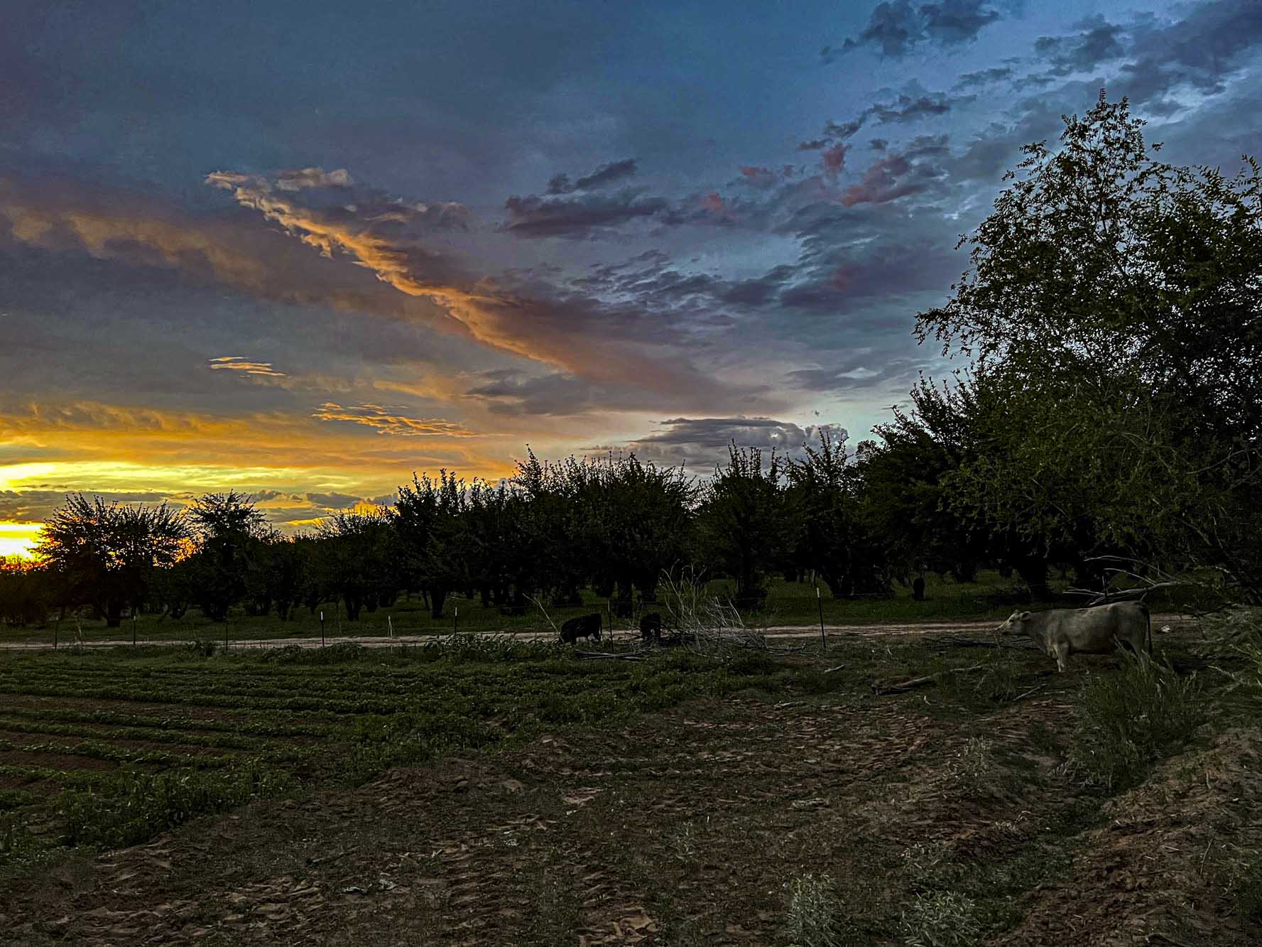 Cows in the dusty dusk