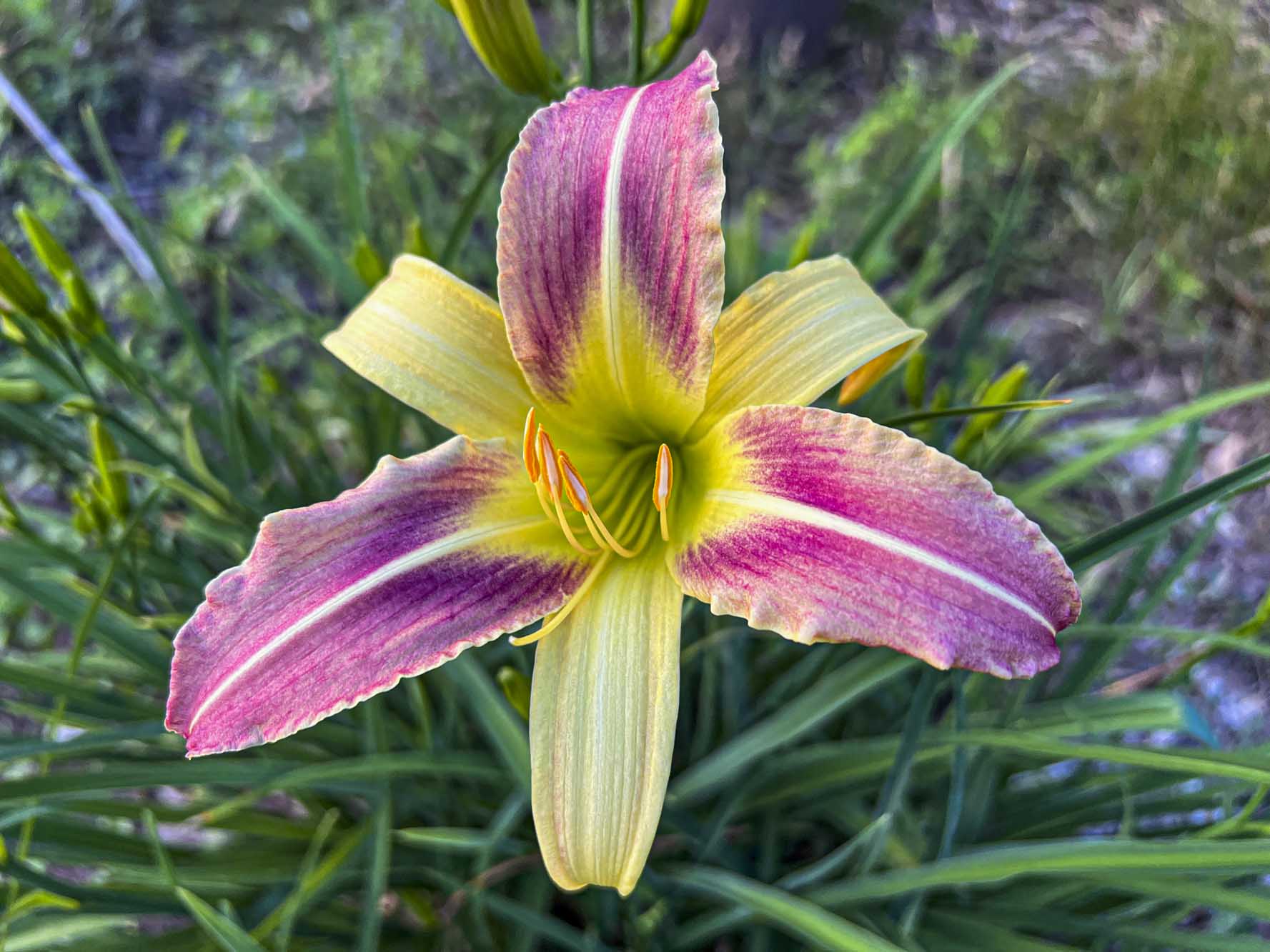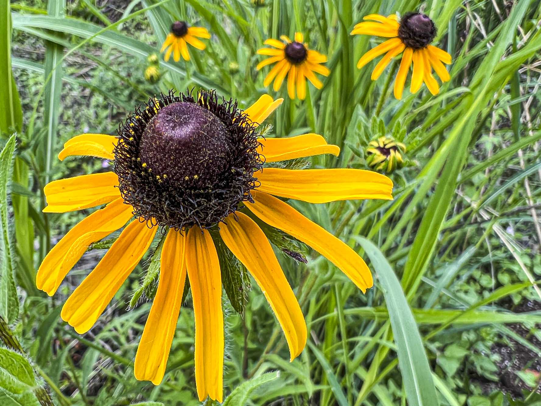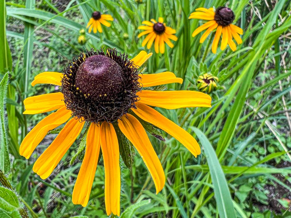 Black bamboo sprouting in Julie’s Giant Dr. Huey has a Japanese look to it.
