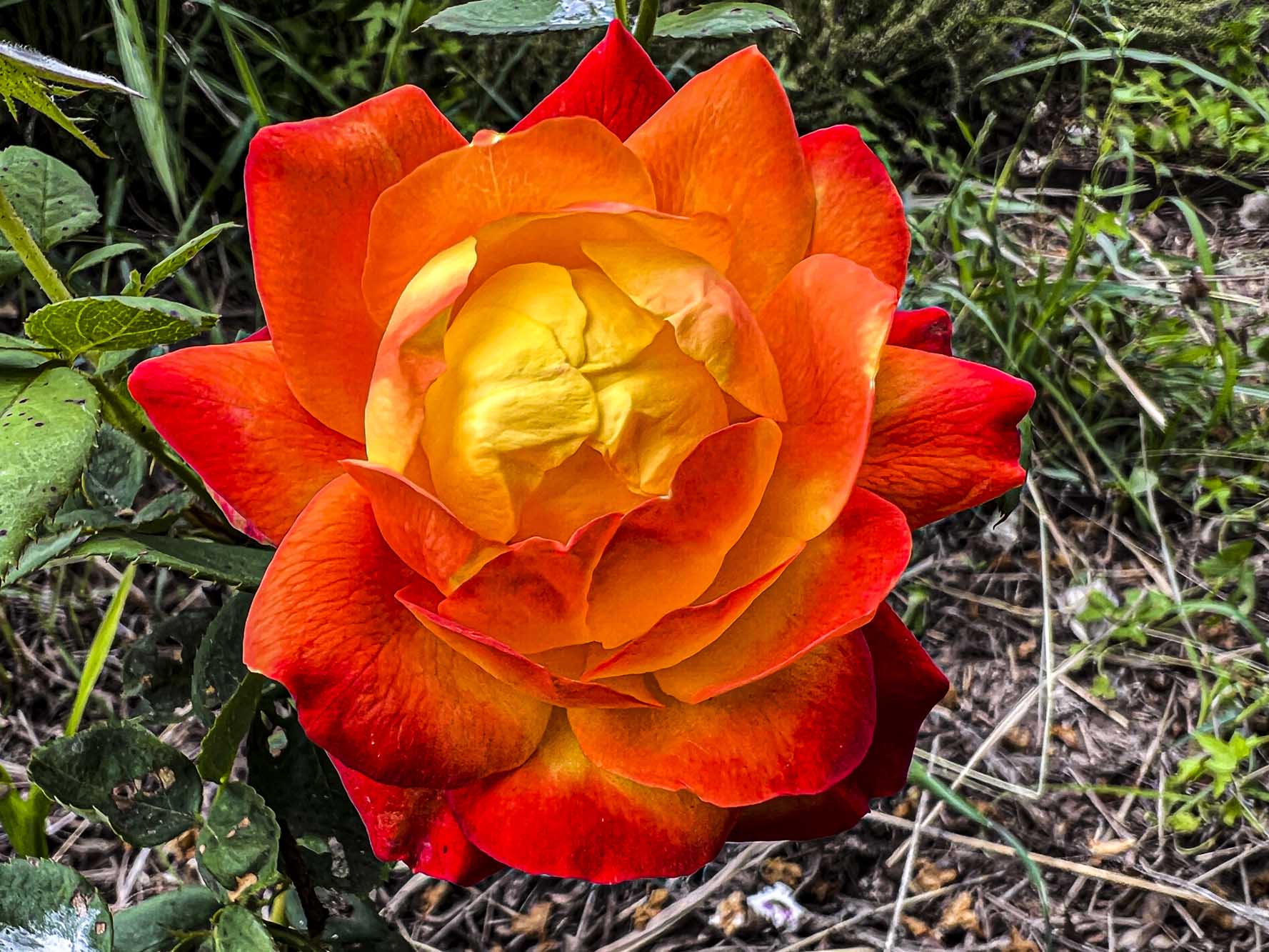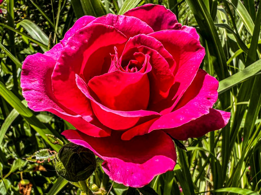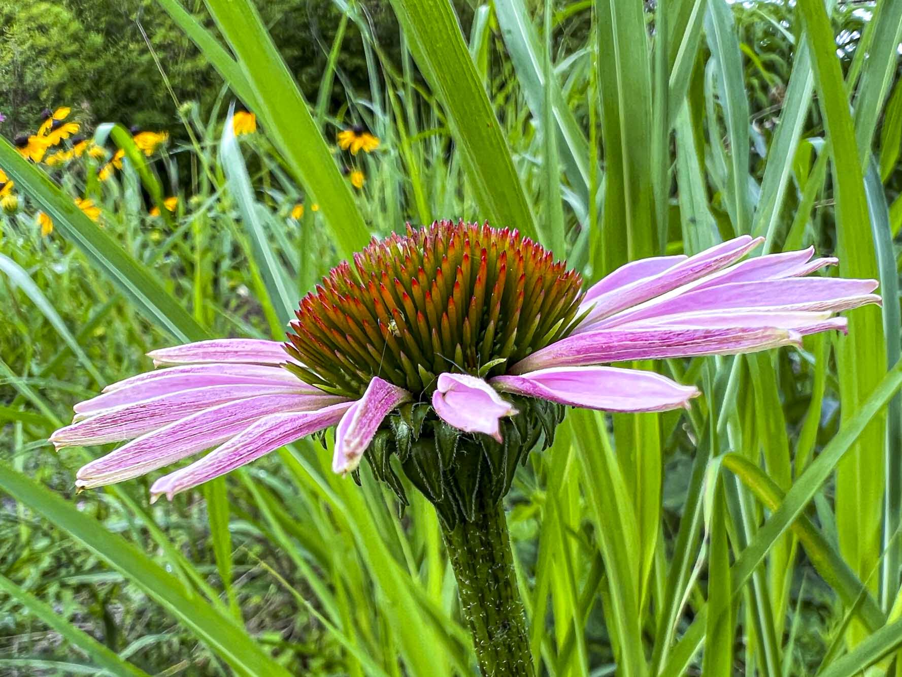 Black bamboo sprouting in Julie’s Giant Dr. Huey has a Japanese look to it.