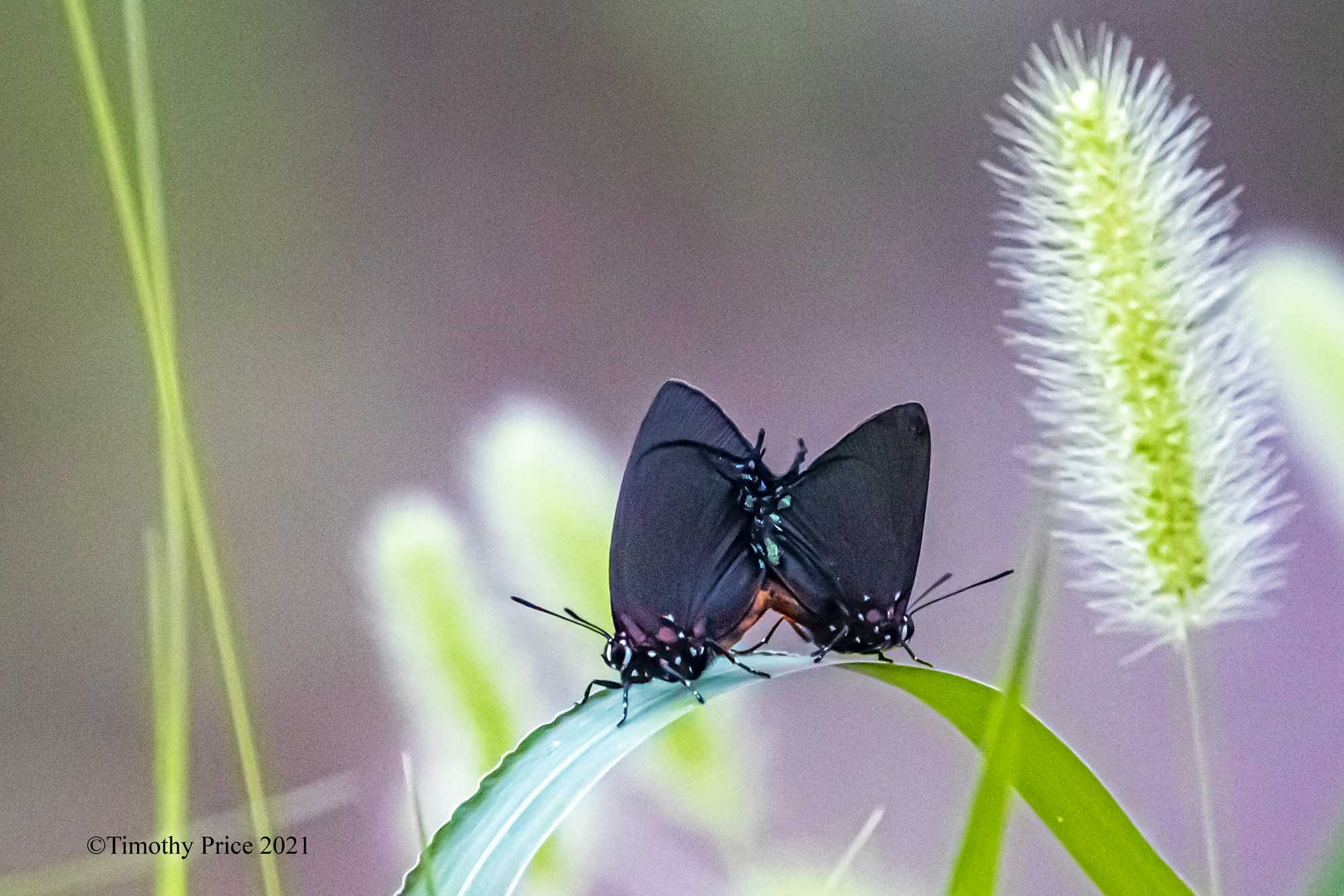 This video of the Great Purple Hairstreak Butterfly shows how it moves the flanges on the ends of its wings while it feeds. I assume it’s to fool predators into going after the flanges on its wings, giving it a chance to escape.
