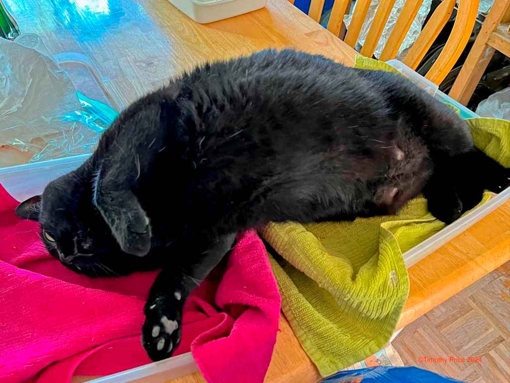 Nora Owl in on of her favorite spots. She was not hooting a grocery list to Osric tonight.