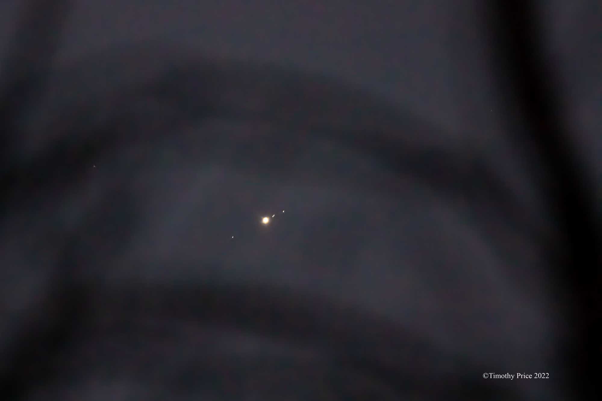 Jupiter and four moons at 9:30 pm last night.