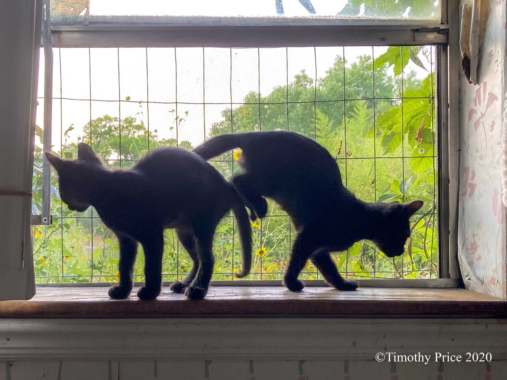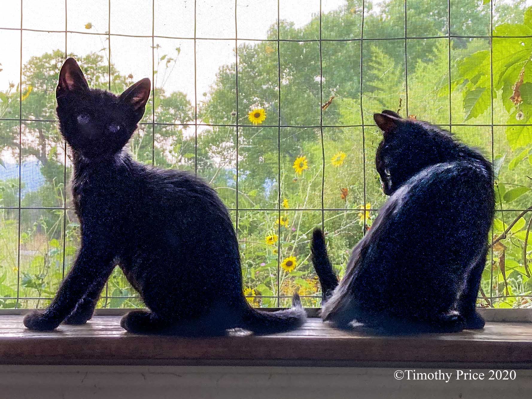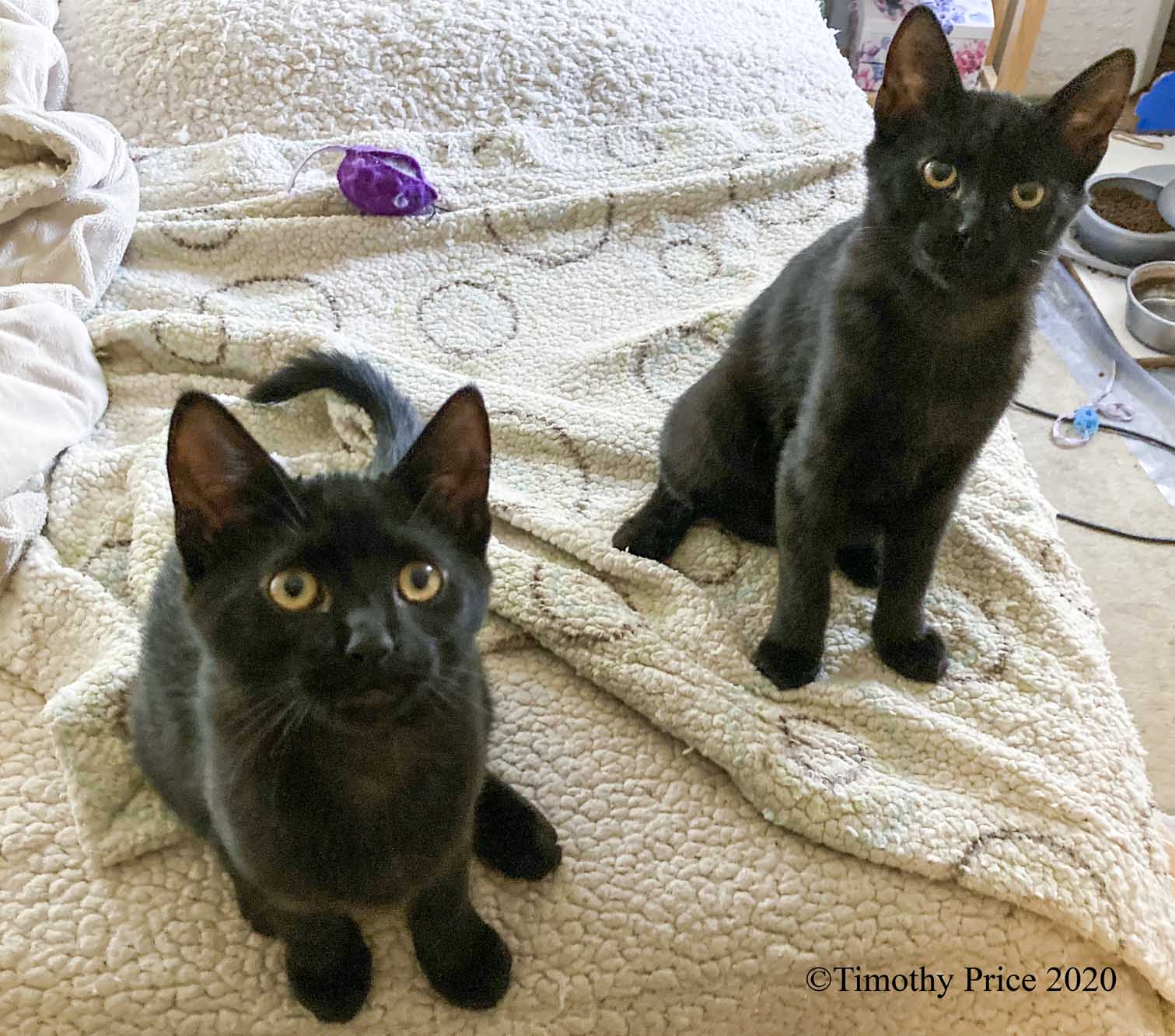 Glenda and Gwendolyn have full run of the house, catio, and deck now. Teagan had cast them as flying monkeys in a kitty fantasy, and she was right. The kittens are like a couple of flying monkeys. They have become very difficult to photograph because they won’t hold still if they are out of the dark kitten caves they have made for themselves in the laundry room. The big kitties have finally accepted the kittens and everyone is getting along reasonably well. The big kitties have become much more playful under the influence of the kittens. Of course, the big cats are also teaching the kittens many of their bad habits.