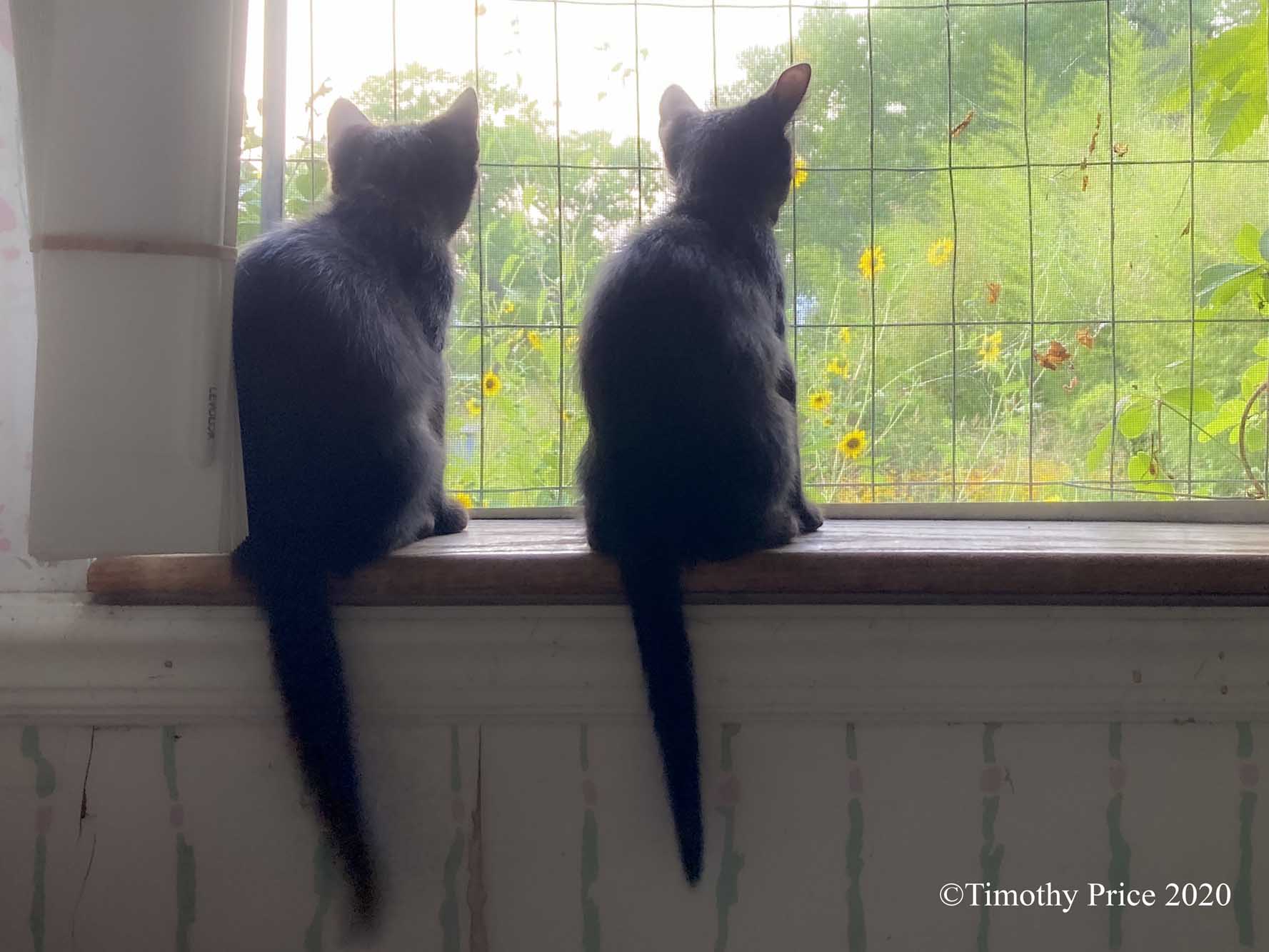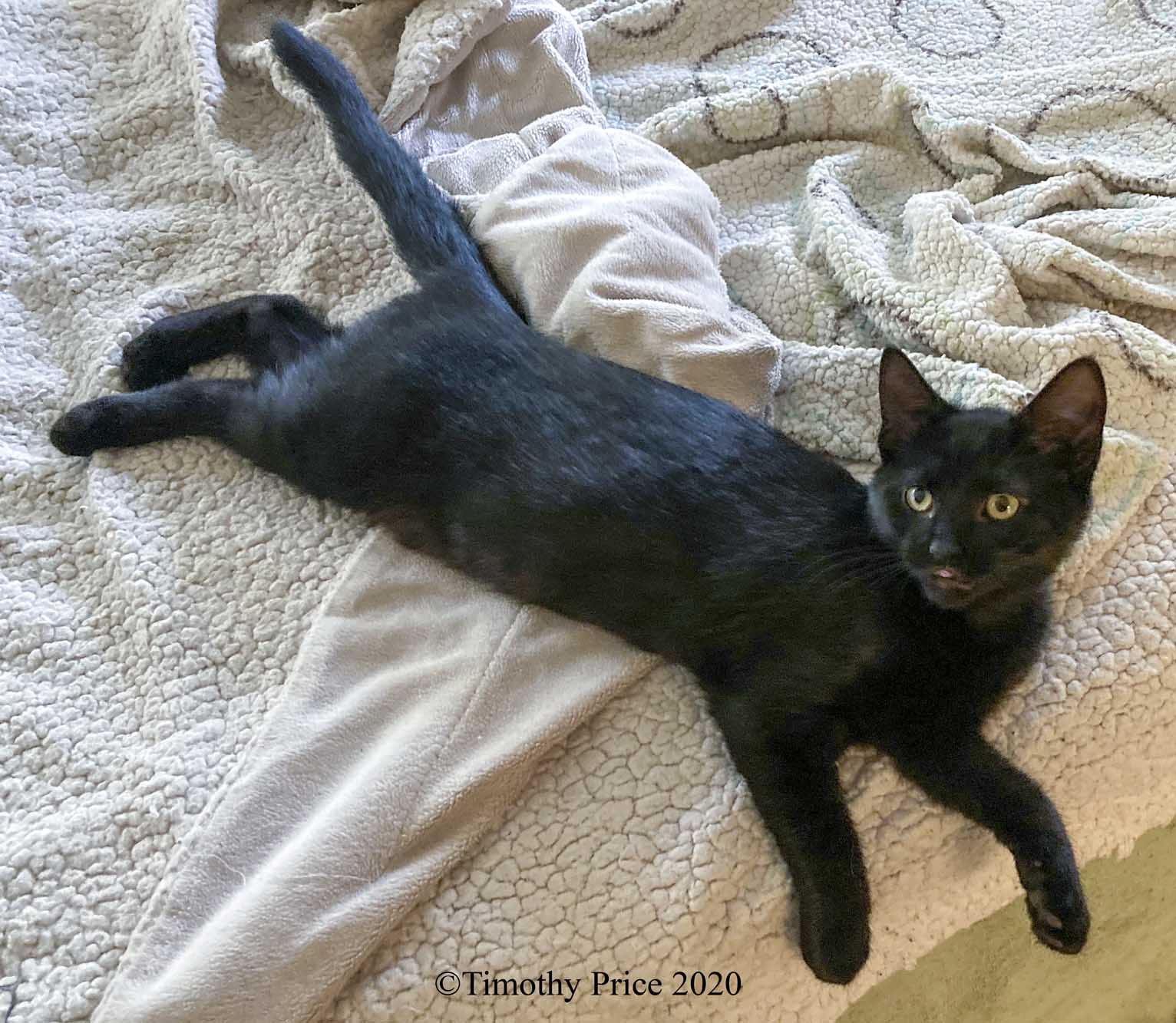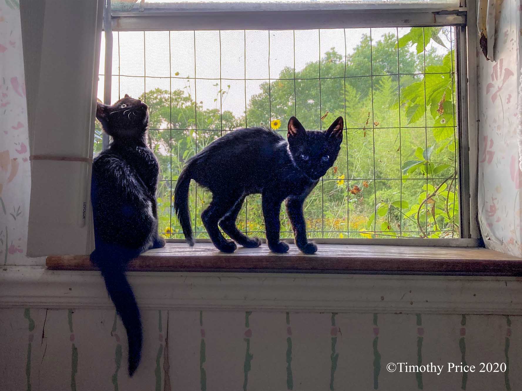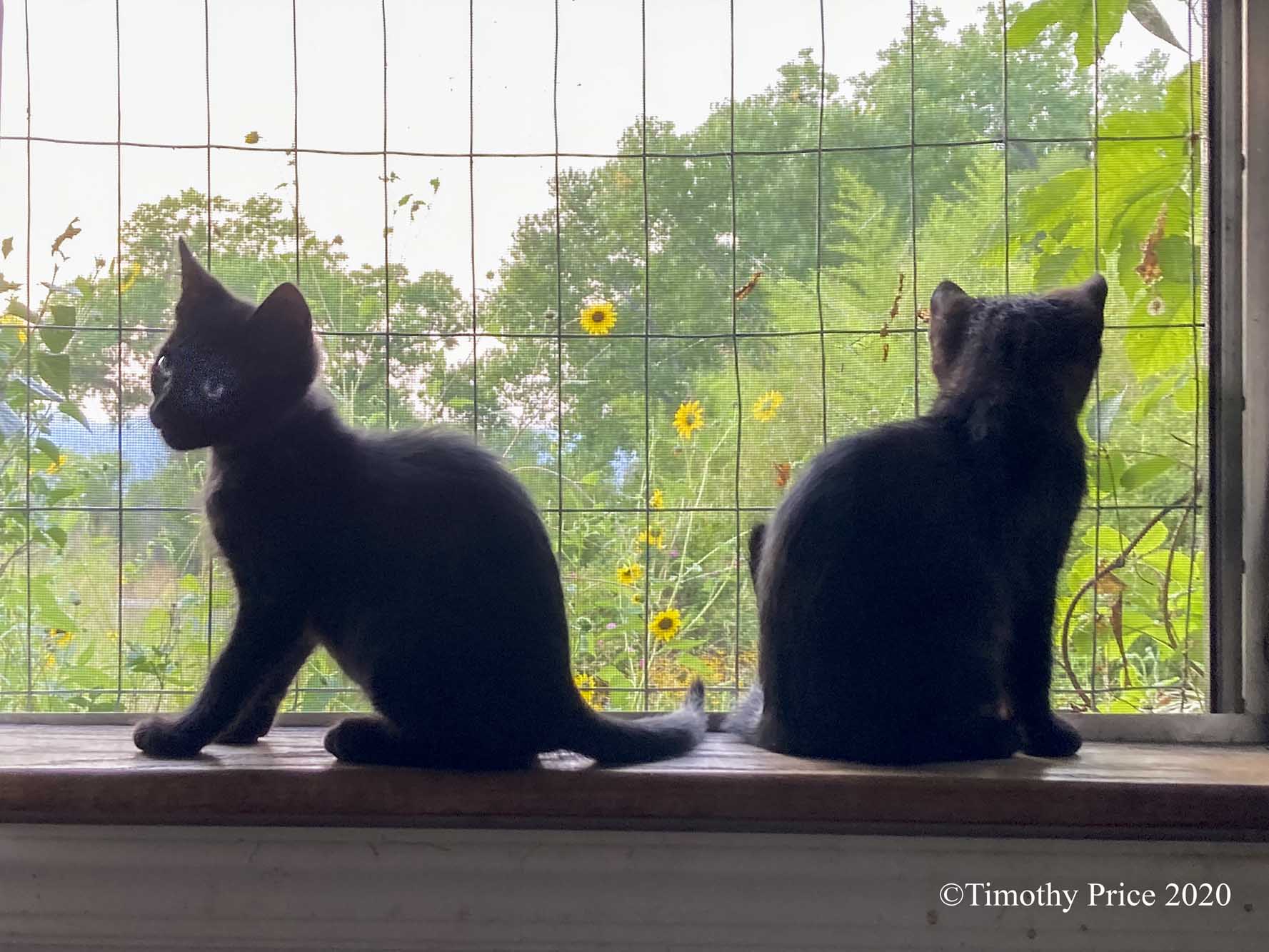 Glenda and Gwendolyn have full run of the house, catio, and deck now. Teagan had cast them as flying monkeys in a kitty fantasy, and she was right. The kittens are like a couple of flying monkeys. They have become very difficult to photograph because they won’t hold still if they are out of the dark kitten caves they have made for themselves in the laundry room. The big kitties have finally accepted the kittens and everyone is getting along reasonably well. The big kitties have become much more playful under the influence of the kittens. Of course, the big cats are also teaching the kittens many of their bad habits.