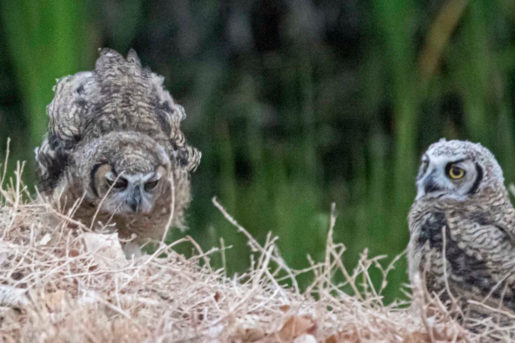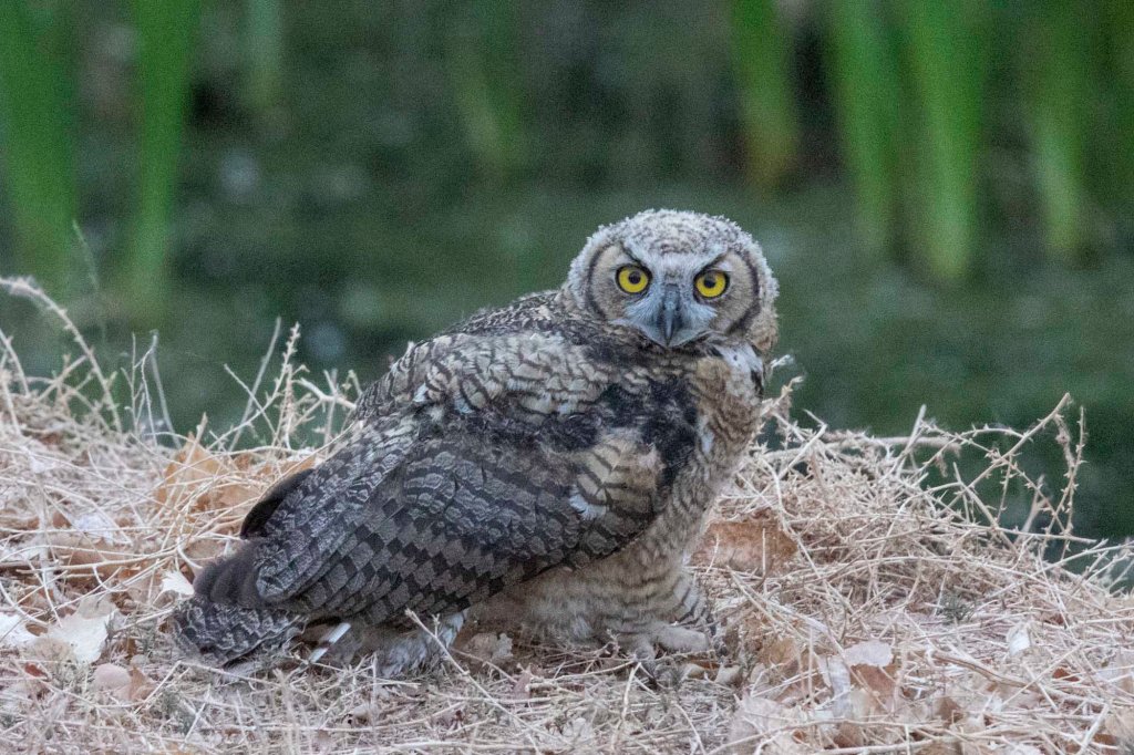The owlets were banking on the top of the levee and down on the bank along the clearwater ditch last night. Paul flew up into a tree on the other side of the Clearwater ditch and Mama Owl brought him something to eat and then flew off to go back to Wowlmart as quickly as she flew in. When it was almost dark Mama Owl came back with either a bat or a mouse. She perched close to me just long enough for me to get a photo of her, then she took off at warp speed.