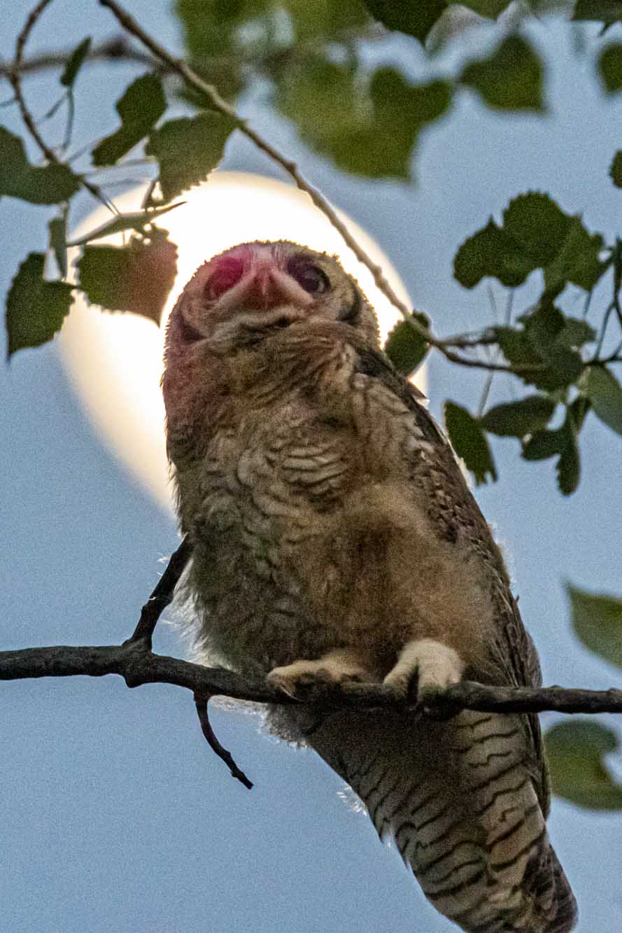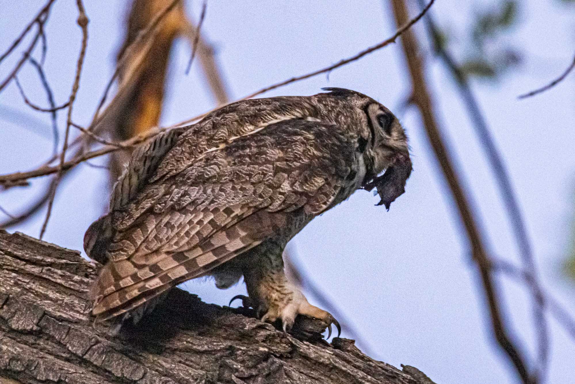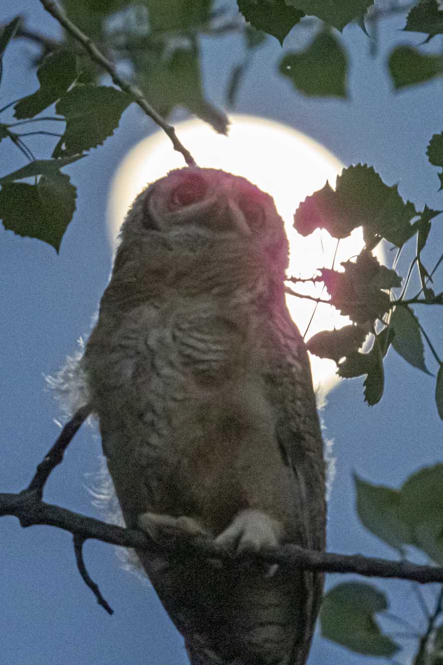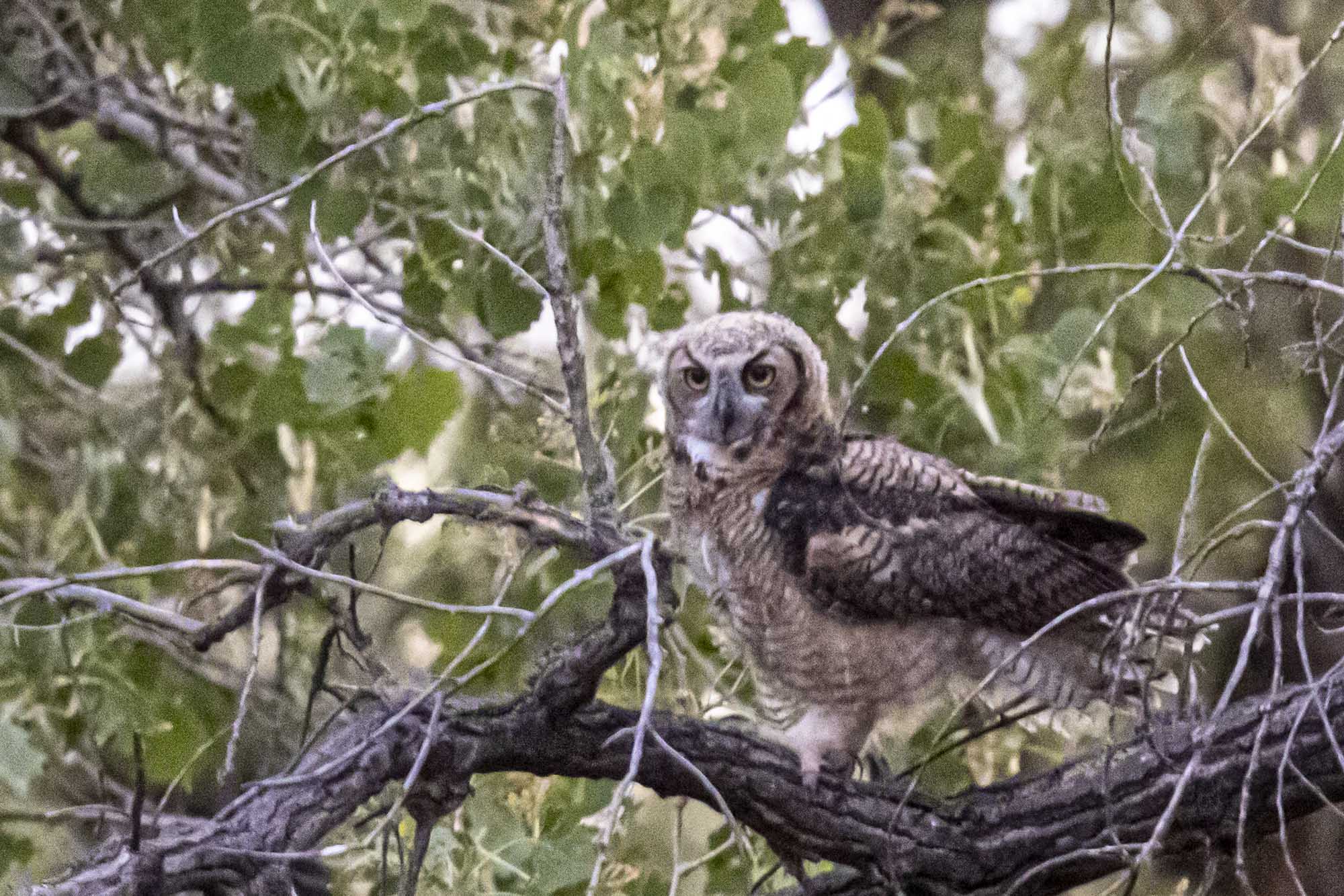 The owlets were banking on the top of the levee and down on the bank along the clearwater ditch last night. Paul flew up into a tree on the other side of the Clearwater ditch and Mama Owl brought him something to eat and then flew off to go back to Wowlmart as quickly as she flew in. When it was almost dark Mama Owl came back with either a bat or a mouse. She perched close to me just long enough for me to get a photo of her, then she took off at warp speed.