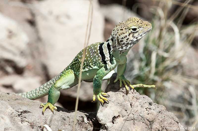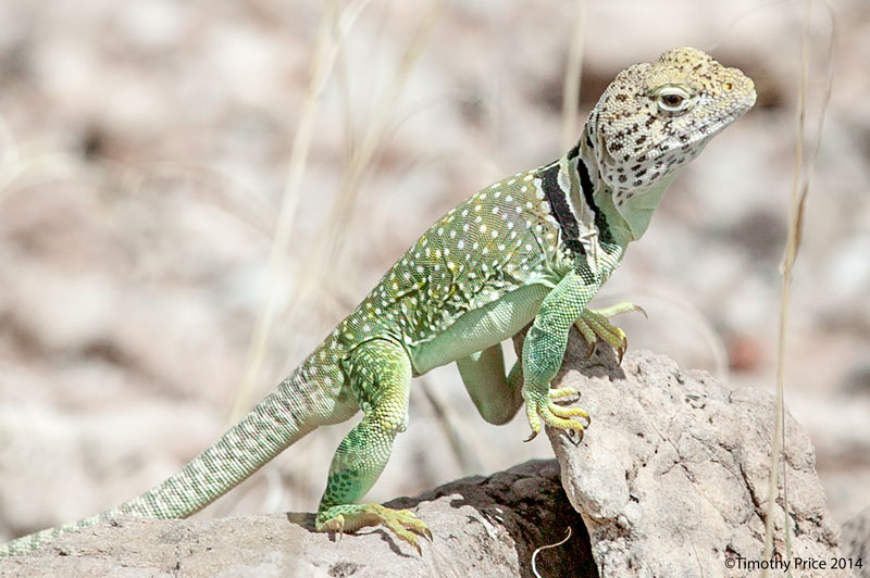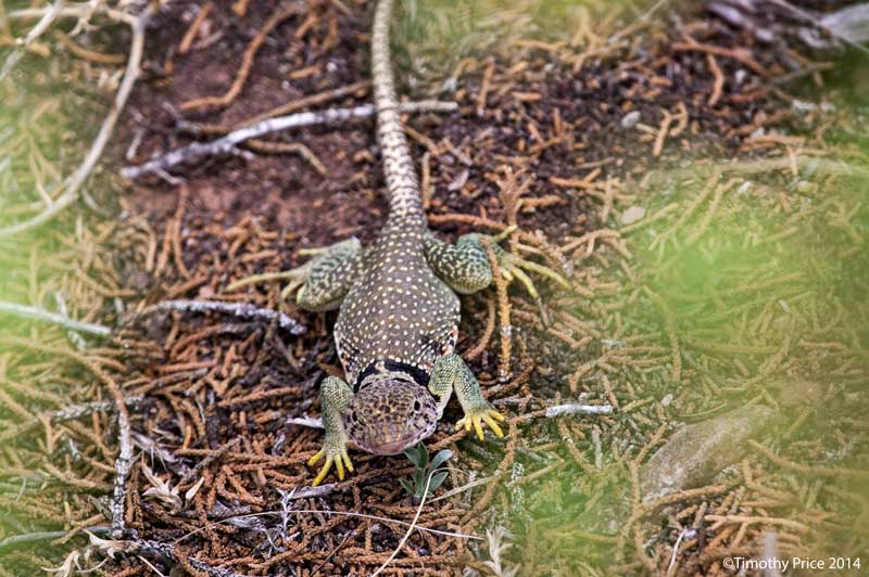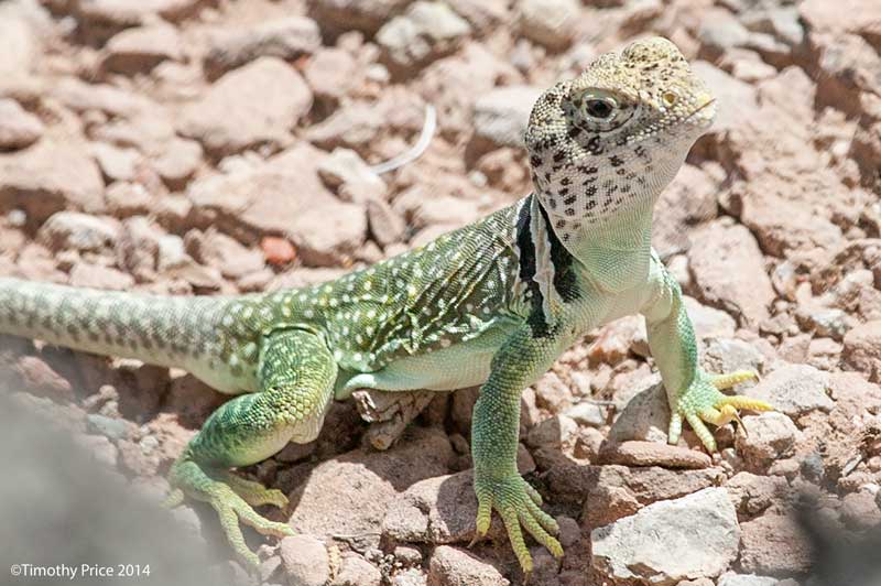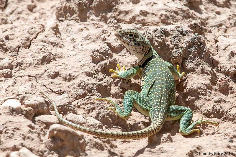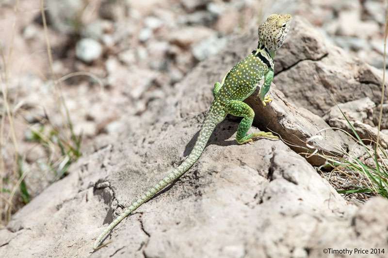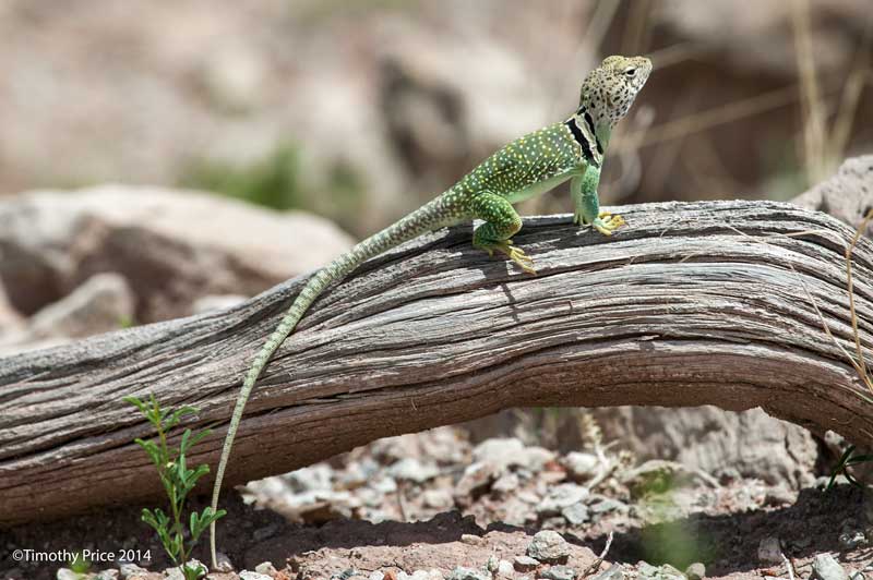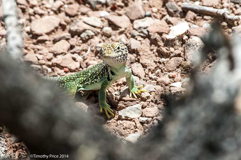 We also came across a couple of Collared Lizards while on our hike in the canyon at Desert Harbor Retreat (see earlier posts, starting with Off The Grid for the full series on Desert Harbor Retreat). The first we lizard saw was shy and wary of us, but the second lizard was a real show lizard who made a reptilian fashion statement by moving from one rock to another striking poses, then striking the perfect show lizard pose on a weathered log. I simply followed her around capturing her poses and cute expressions.