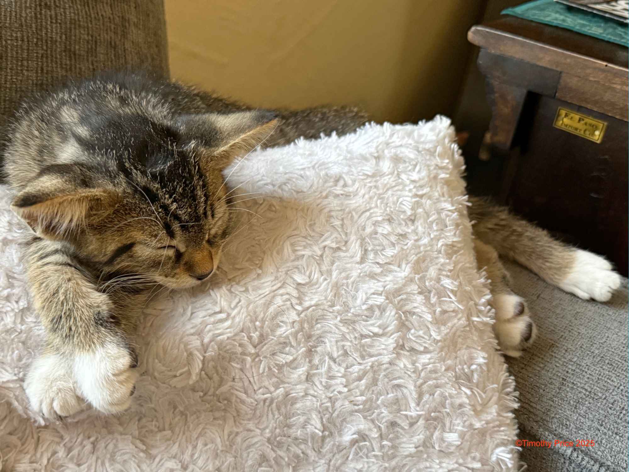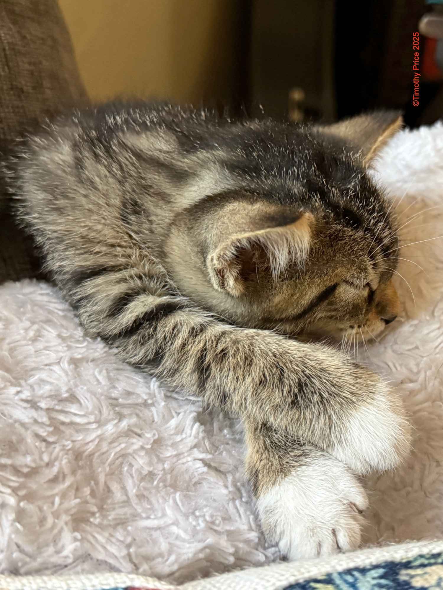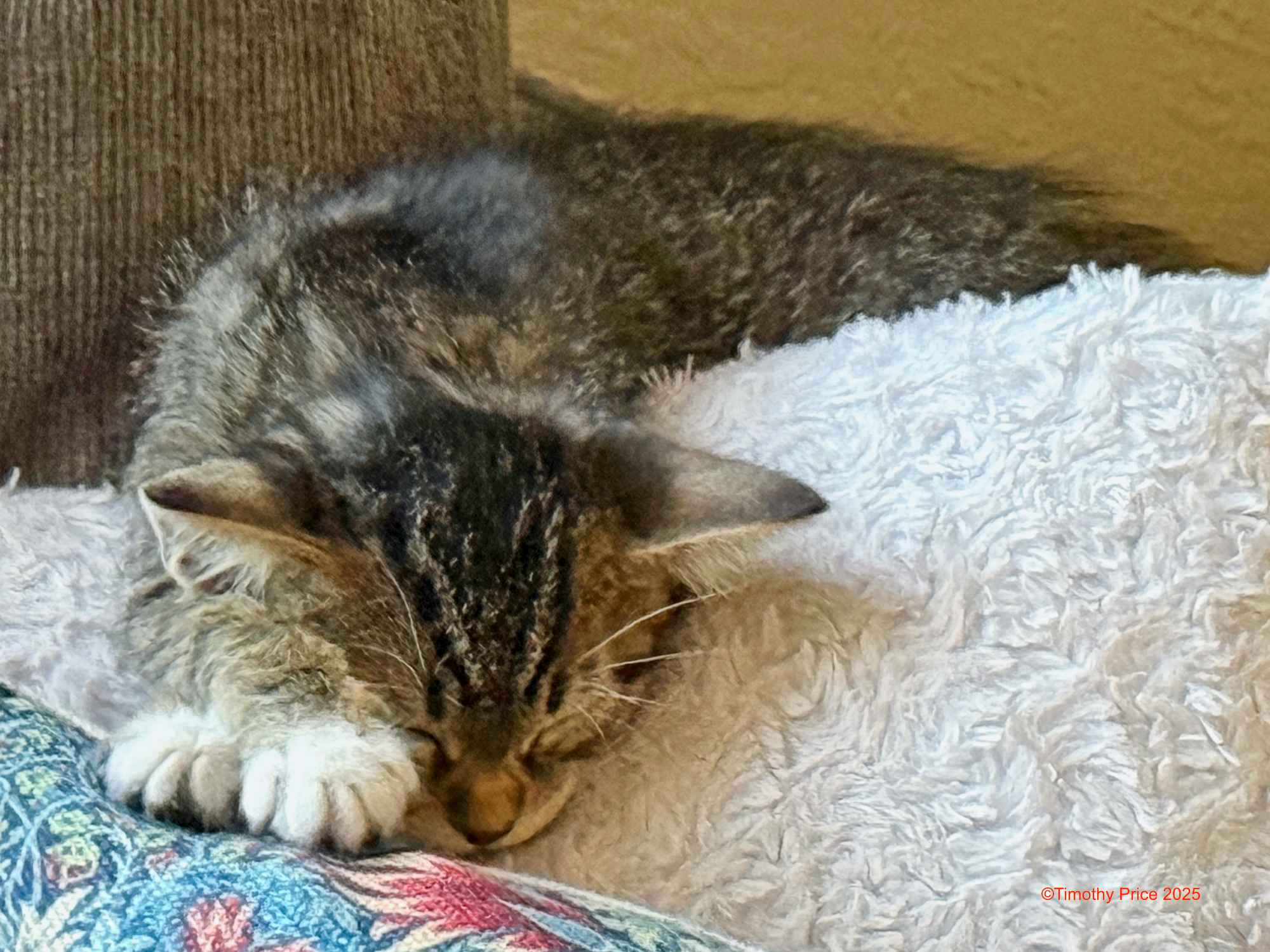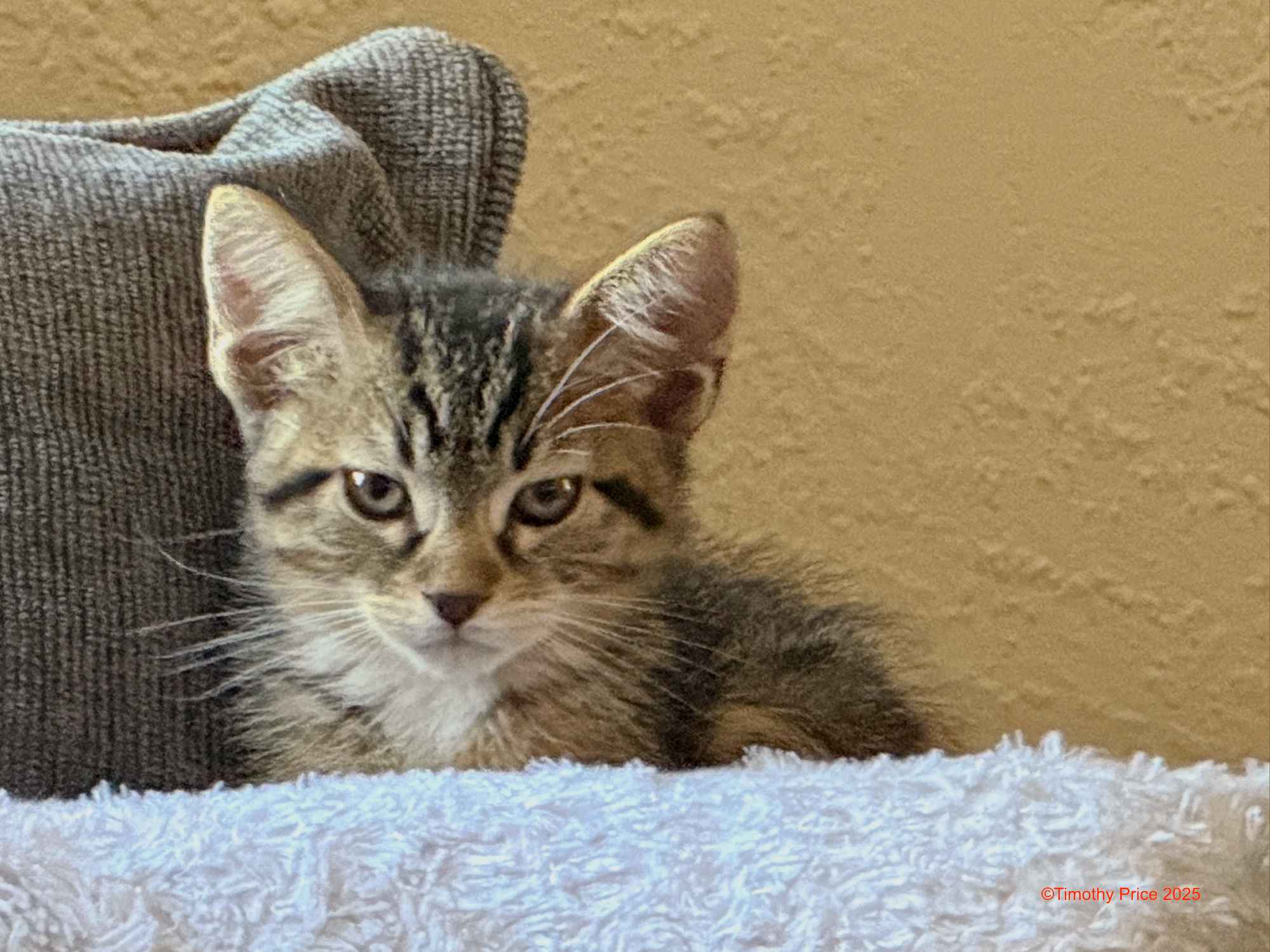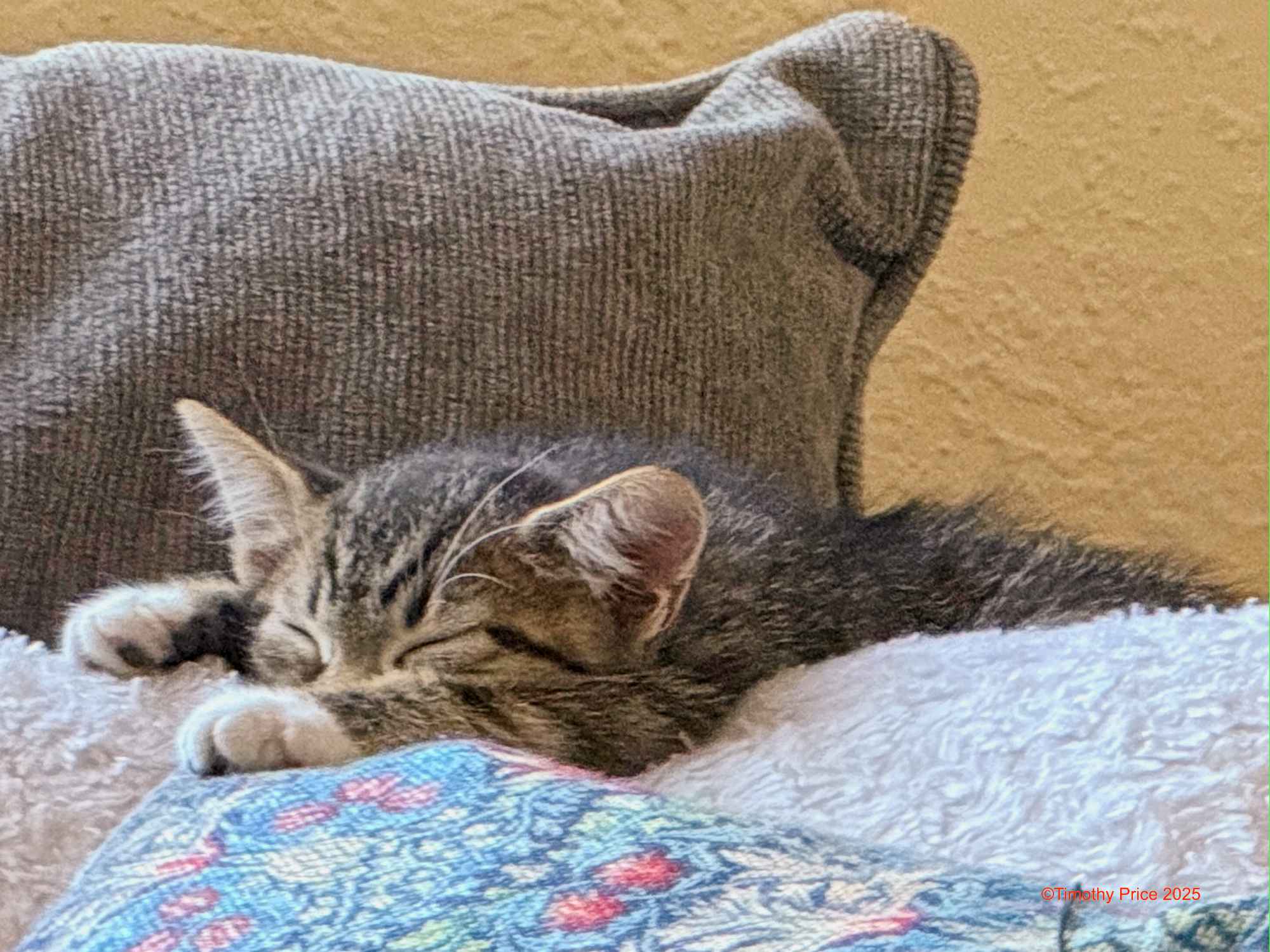 Lane and Suzette brought home a new kitten yesterday. We went over to visit the sweet kitty. He’s nine weeks old and super cute. They are still thinking about a name for him.