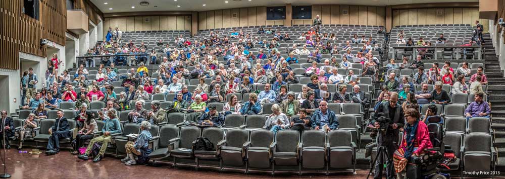 The tulips were chomping on a branch from a trumpet vine yesterday morning. We went to the first lecture of the Institute of Medieval Studies spring lectures series, “Medieval Myths & Monsters” last night. The speaker was Leslie Webster from the British Museum and her topic was “Myth and Mission: The Riddle of the Franks Casket”. It was a wonderful lecture. Tonight there will be two lectures. The first lecture is by Tomás Ó Cathasaigh from Harvard University speaking on “Early Irish Origin Legends”. The second lecture is by Leslie Webster on The Staffordshire Treasure. The lectures begin at 5:15 in Woodward Hall at UNM. Woodward Hall is just west of the Student Union Building, across from the Fine Arts Building. As you can see from the photo below the first lecture was well attended, but there were still lots of open seats.