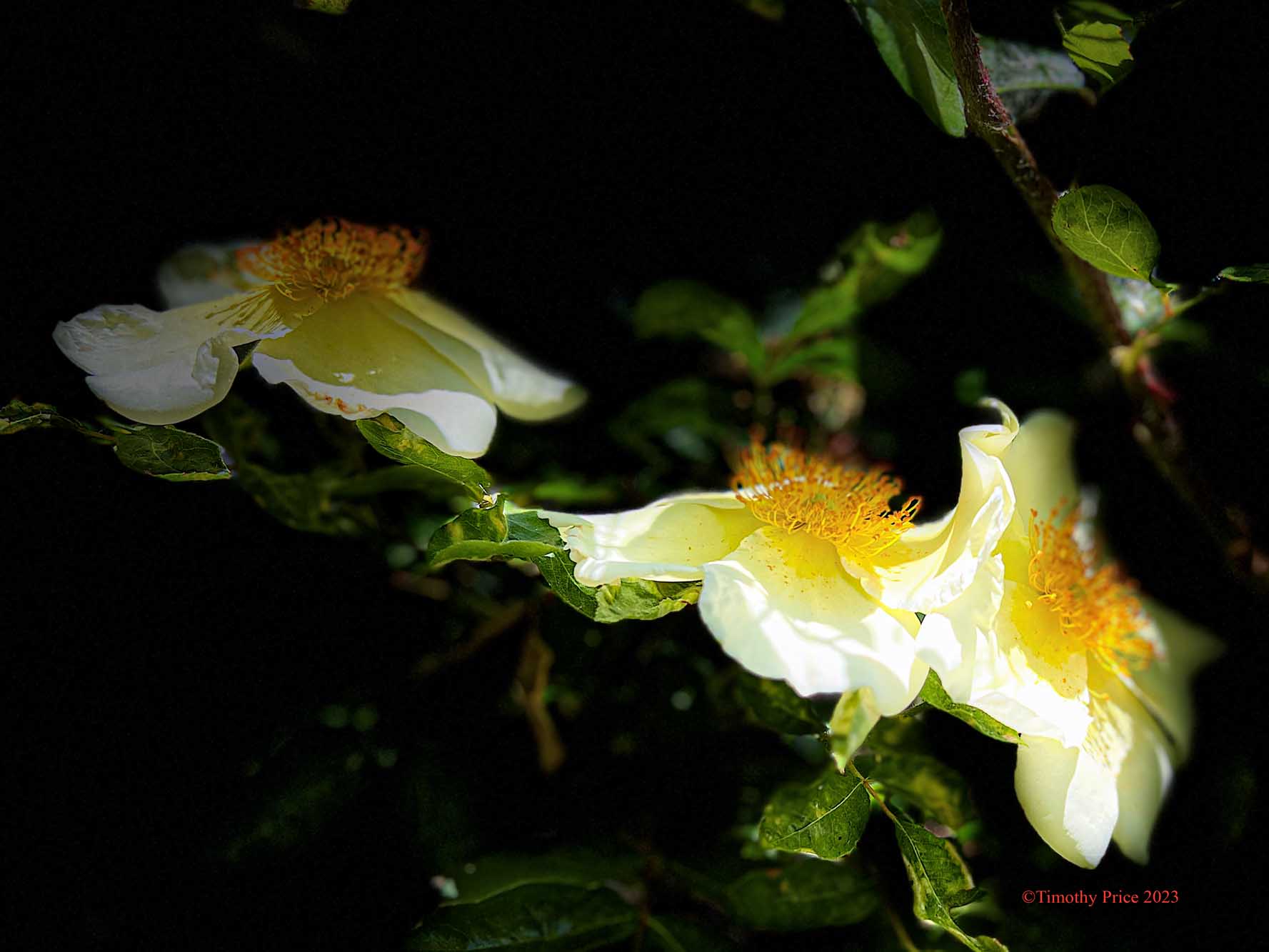 We had a thunderstorm that started yesterday afternoon and rained late into the night producing 0.54 inches (1.4 cm) of rain. A happy Mermaid put on several blooms this morning.